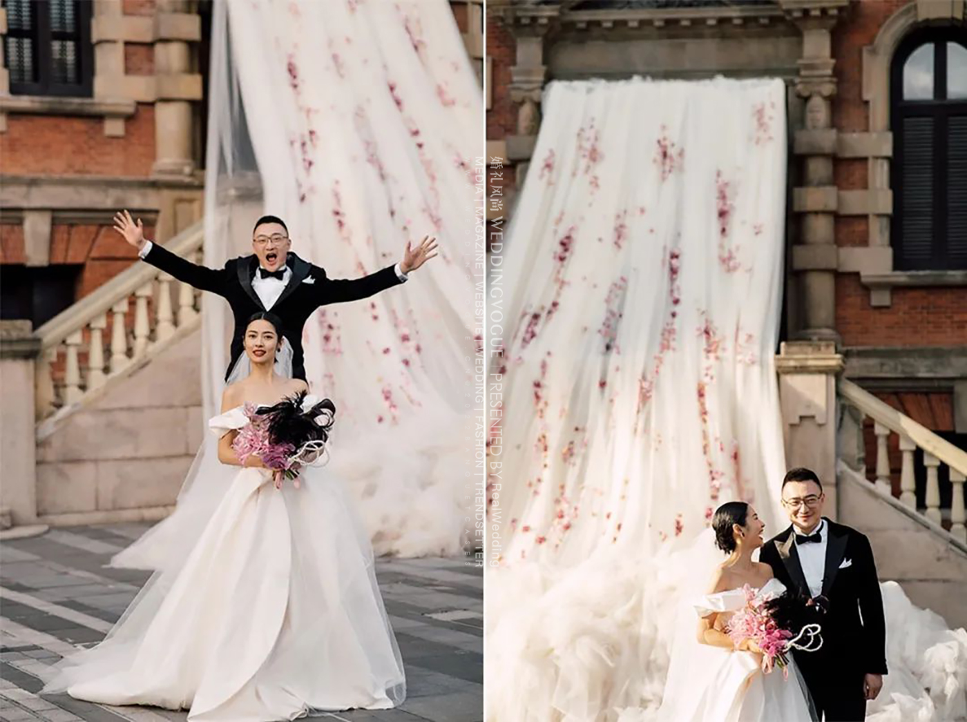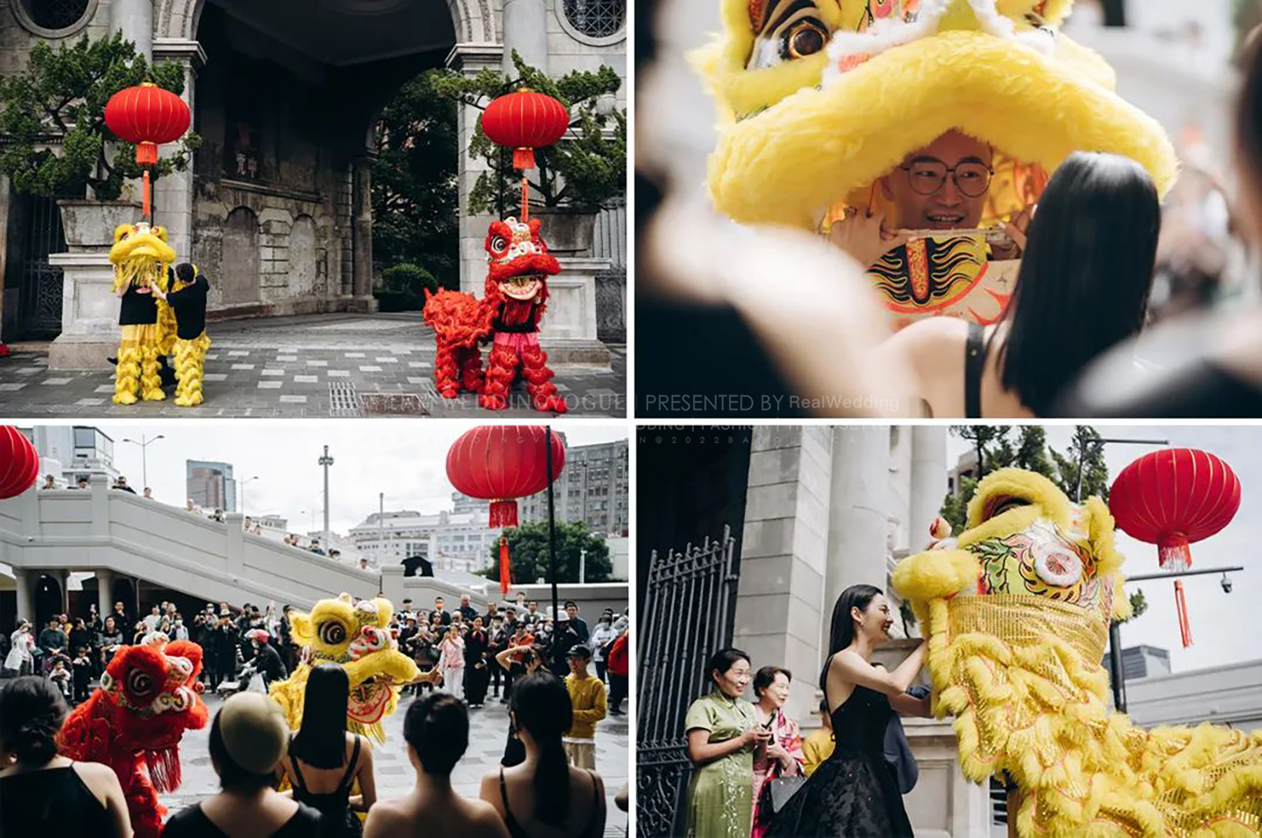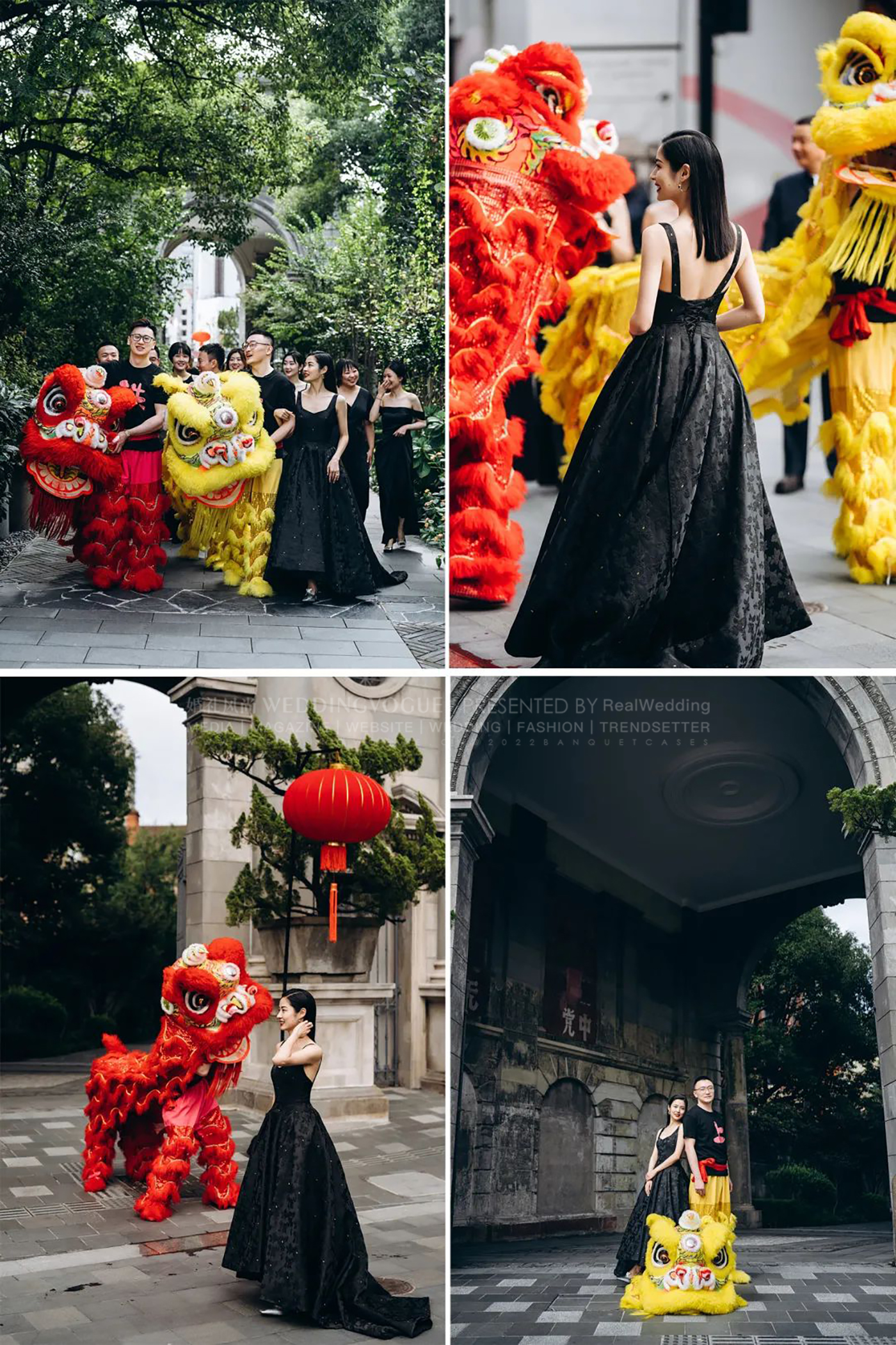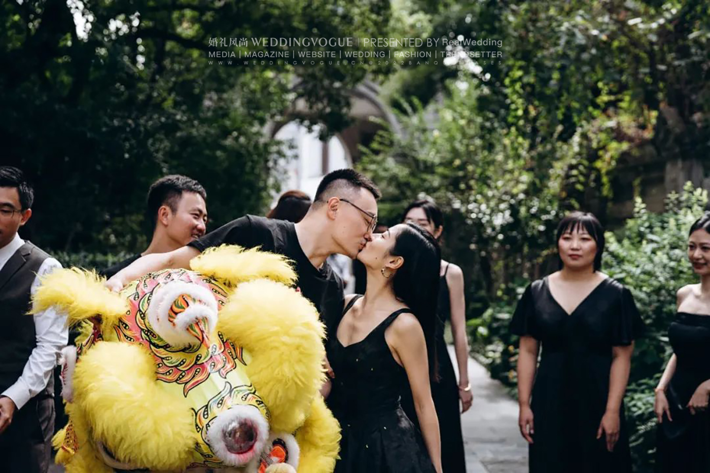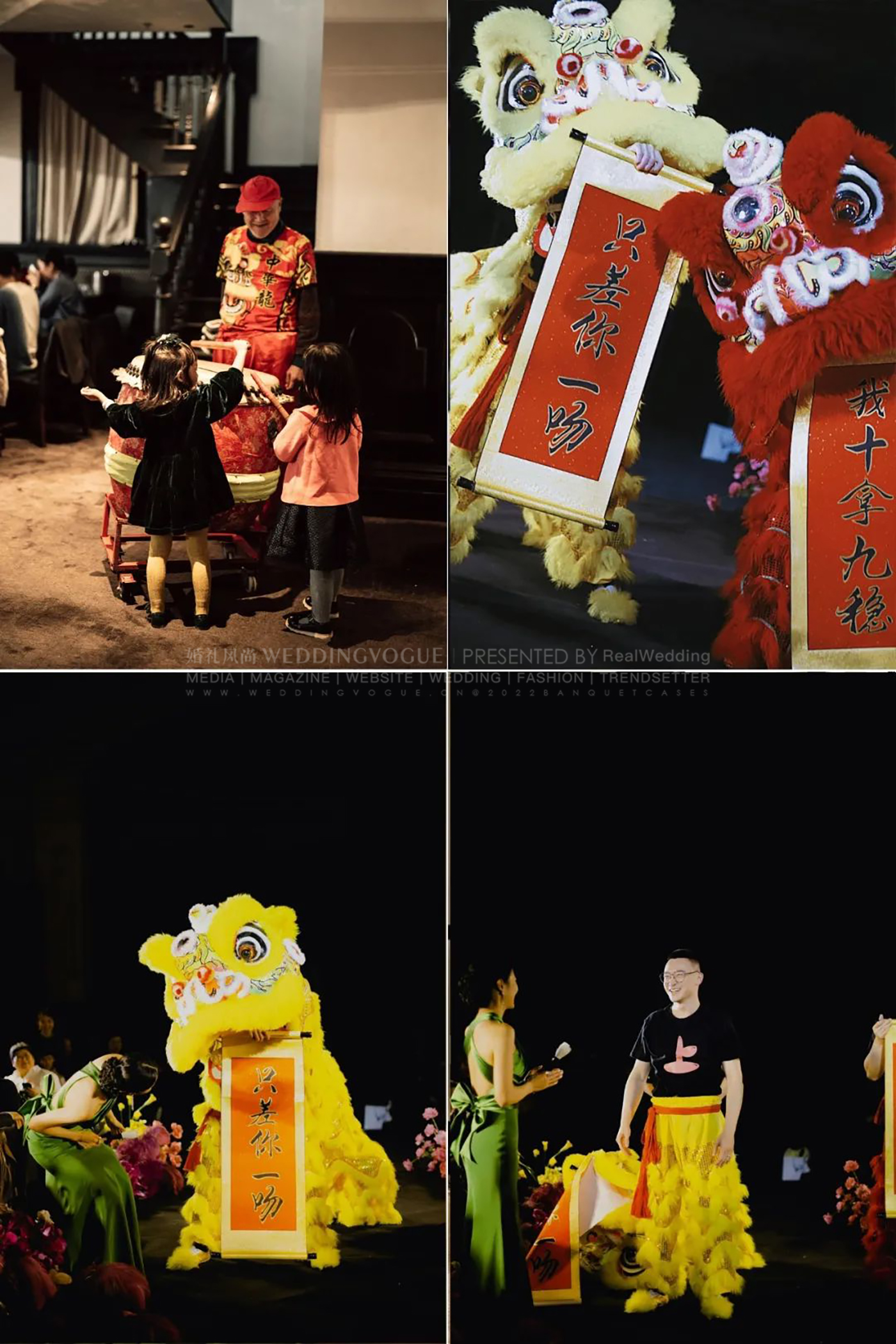 他们想要在婚礼上有舞狮,想要有大胆的撞色,想要有中式美学的再创造。