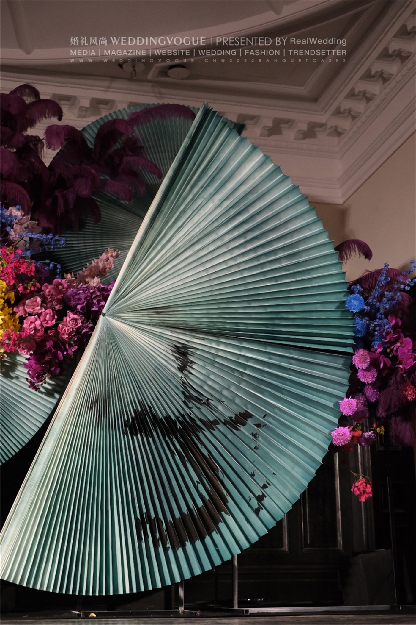 于是婚礼现场做了四个大小不同的扇面,最小的2.2m,最大的2.8m。