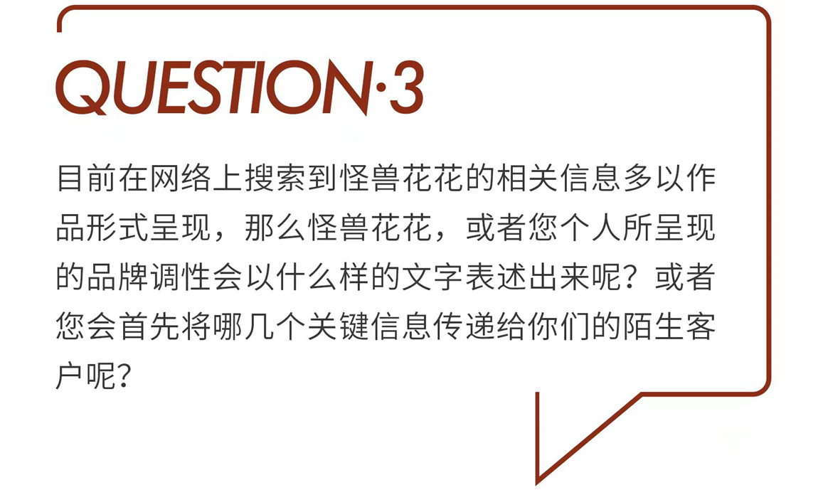 最早想寻求一个比较冲突的名字,一半狂想,一半柔情。类似美女与野兽,也容易记。怪兽代表创意与力量,花花代表姑娘的美丽动人,同样也是在我们的设计里能看到创新与柔软细腻的设计理念。