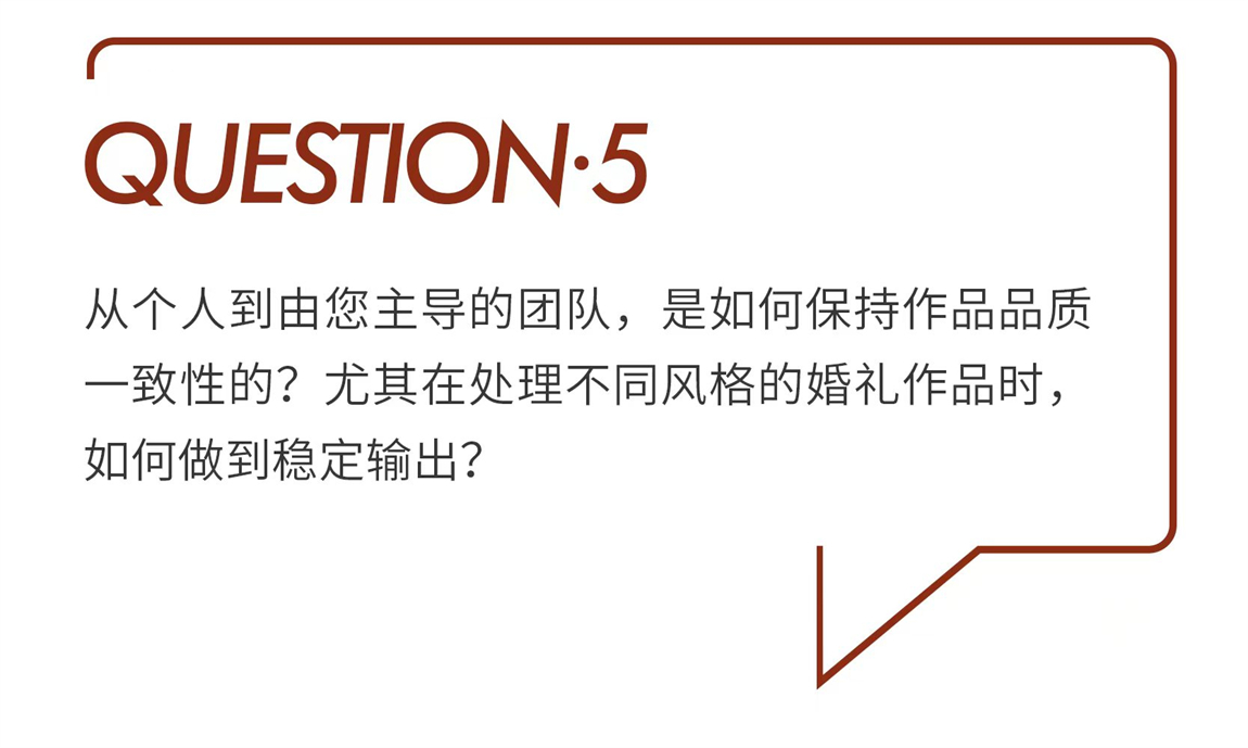 婚礼很容易局限在自我所看到的、所认知的情况下去创作。这就很难创新,更多挑战是每次的不确定性,未知性。但这也是出作品的关键。