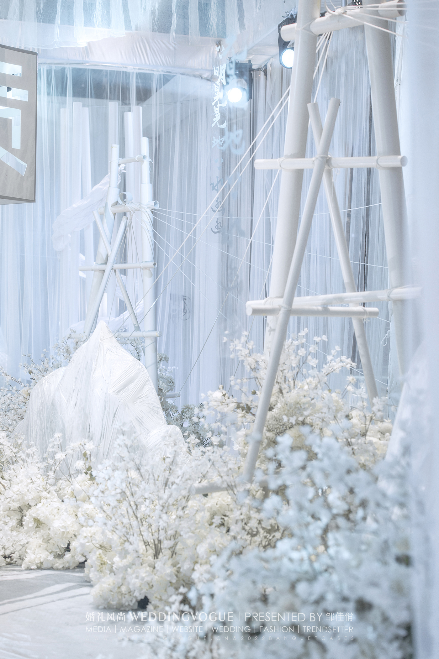 作为一位从业多年的婚礼设计师,他依旧注重婚礼设计的结构框架和构图,在做设计时跳脱出来用橱窗设计和摄影的角度去规划、调整婚礼场景的搭建和布局。