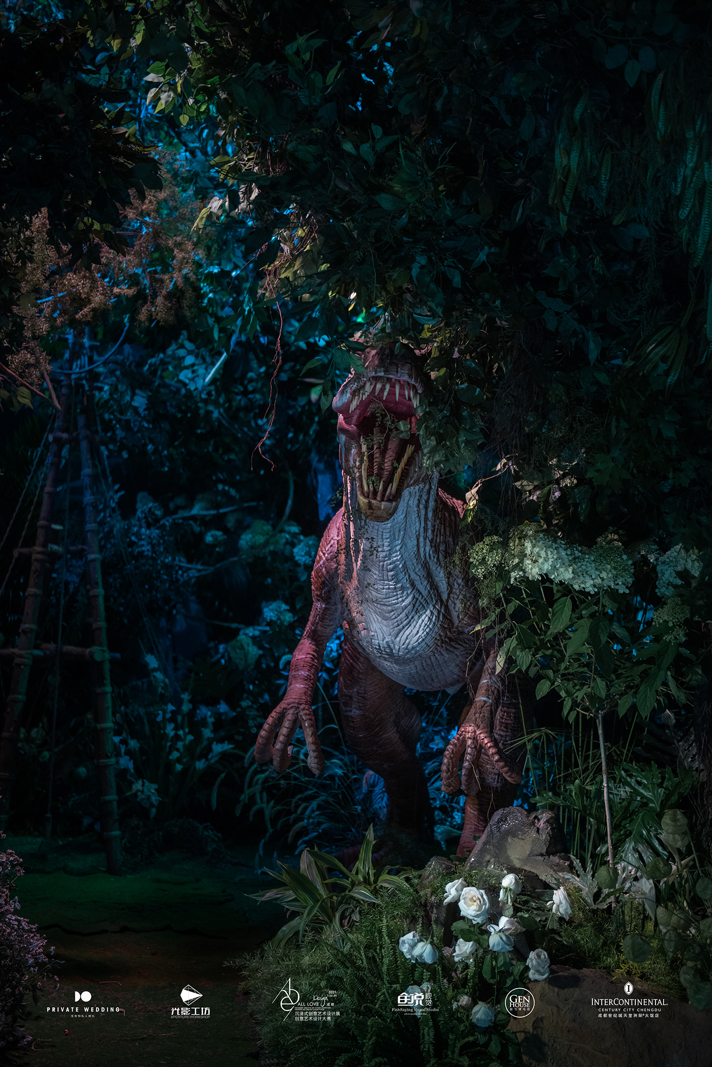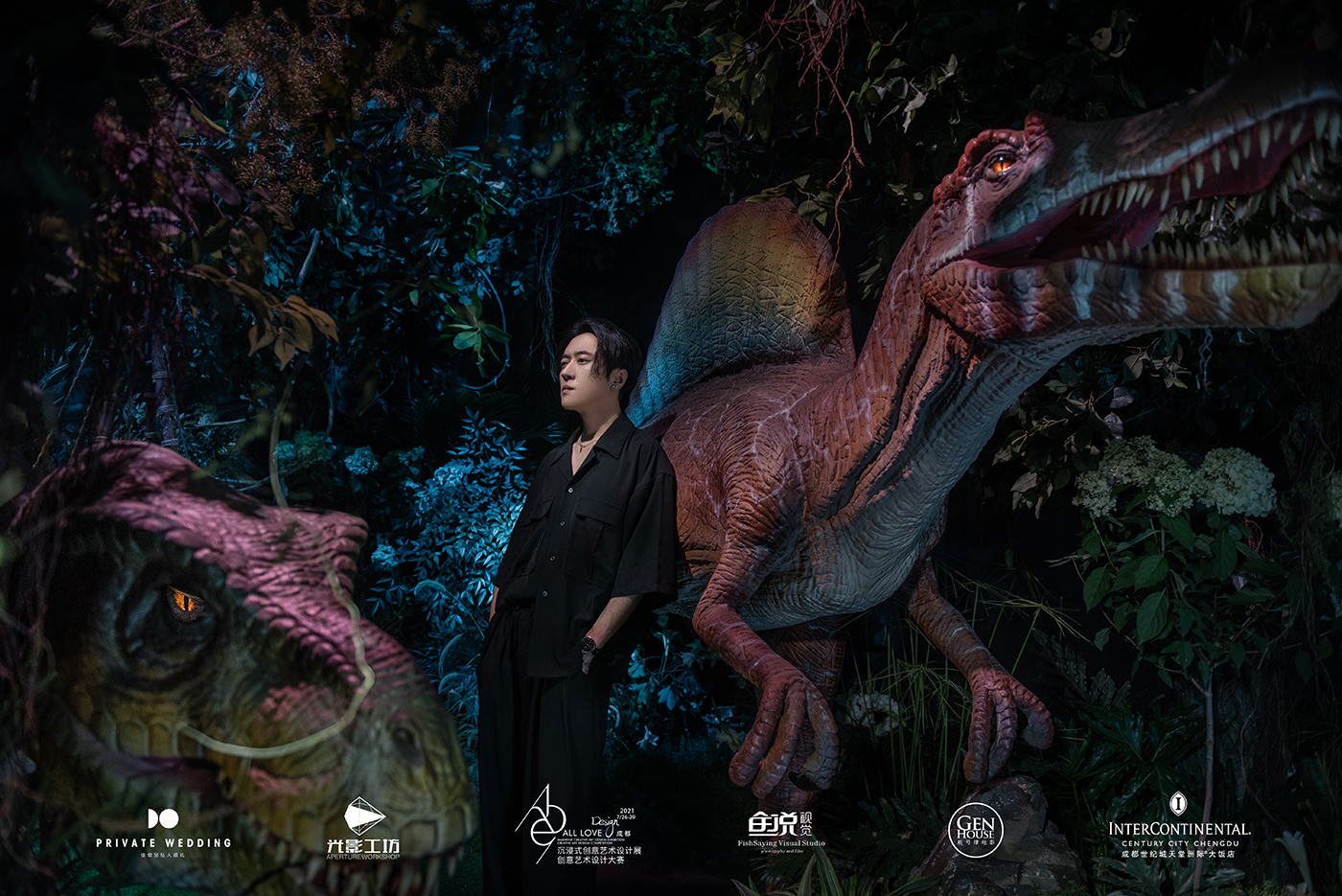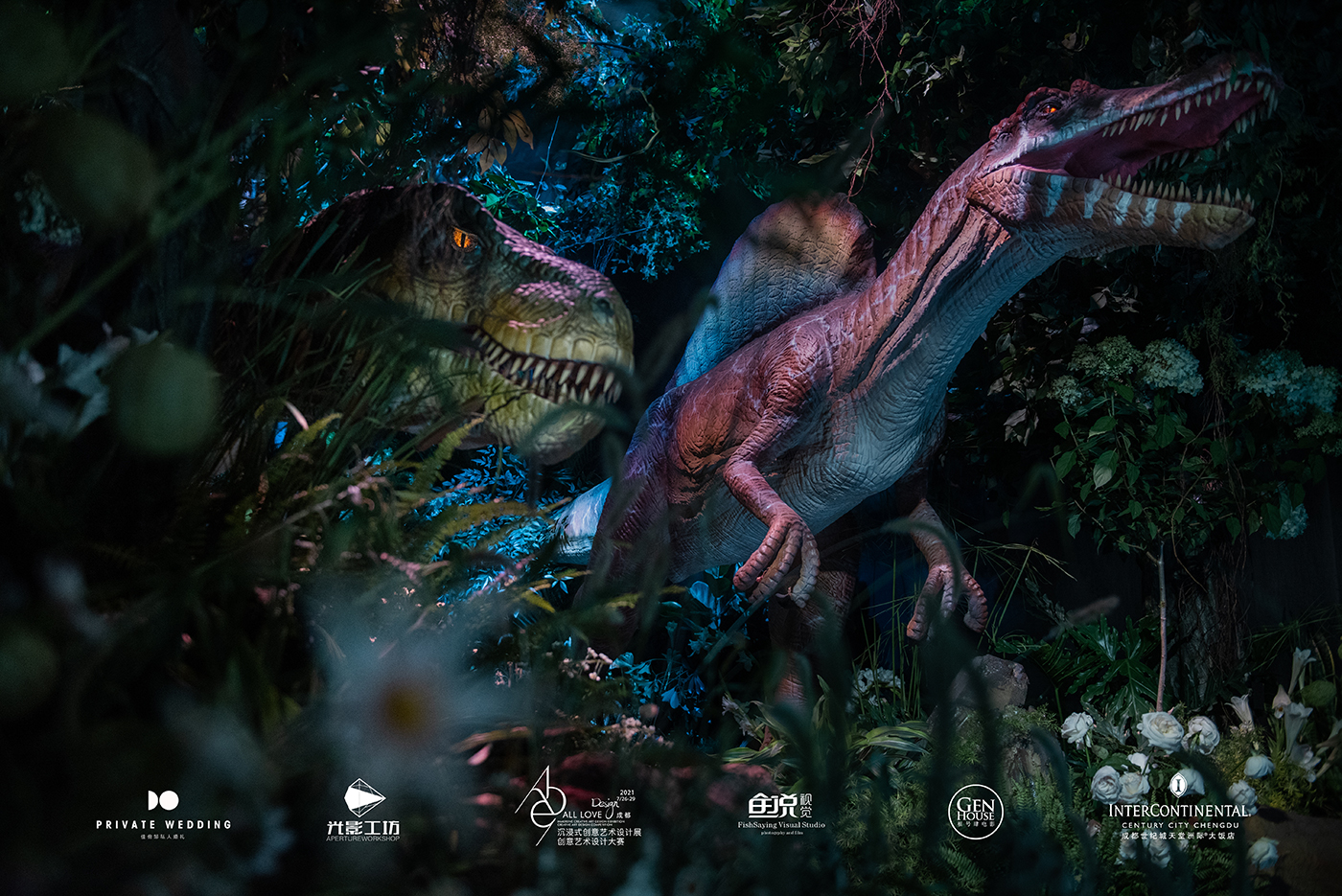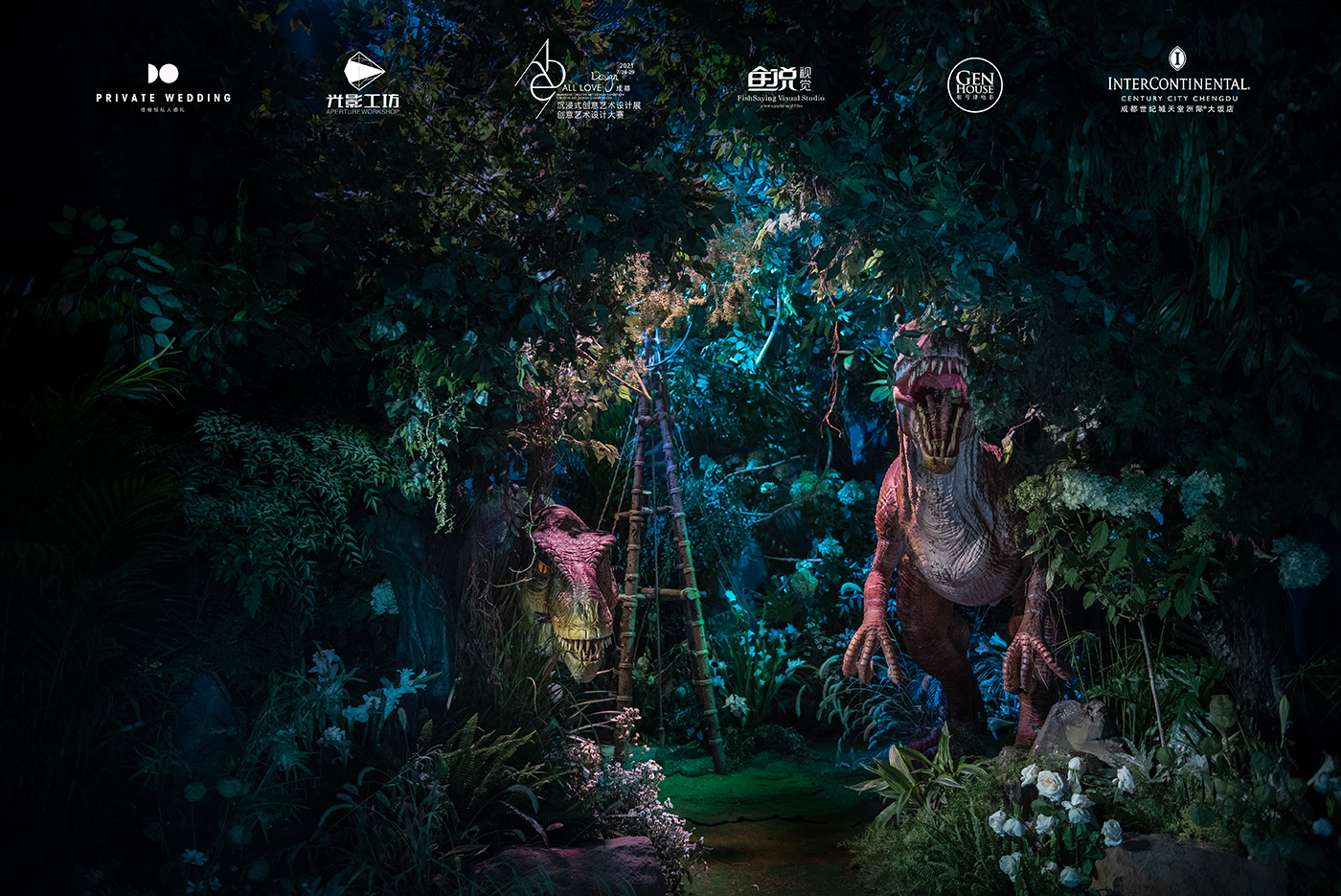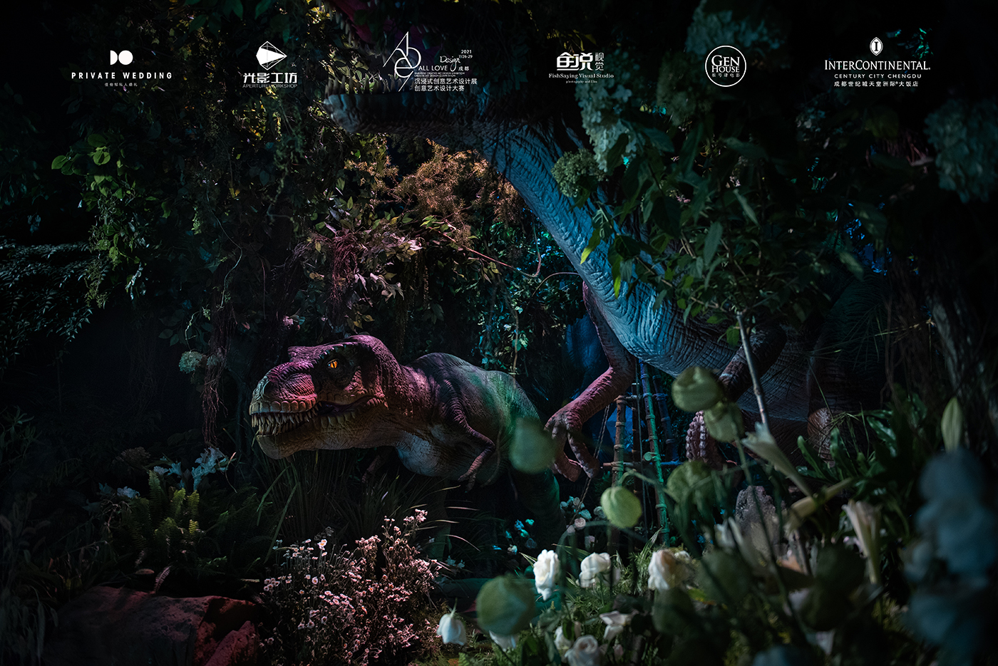 在2021年婚礼风尚举办的「ALL LOVE沉浸式创意艺术设计展」中,一个名为《ALL LOVE IS LONG》的设计作品凭借场景中两头威武霸气的恐龙让人印象深刻,该作品最终拿下“黄金作品”奖。恐龙的来历尚不可考,但确定的是,设计师来自「自贡」。