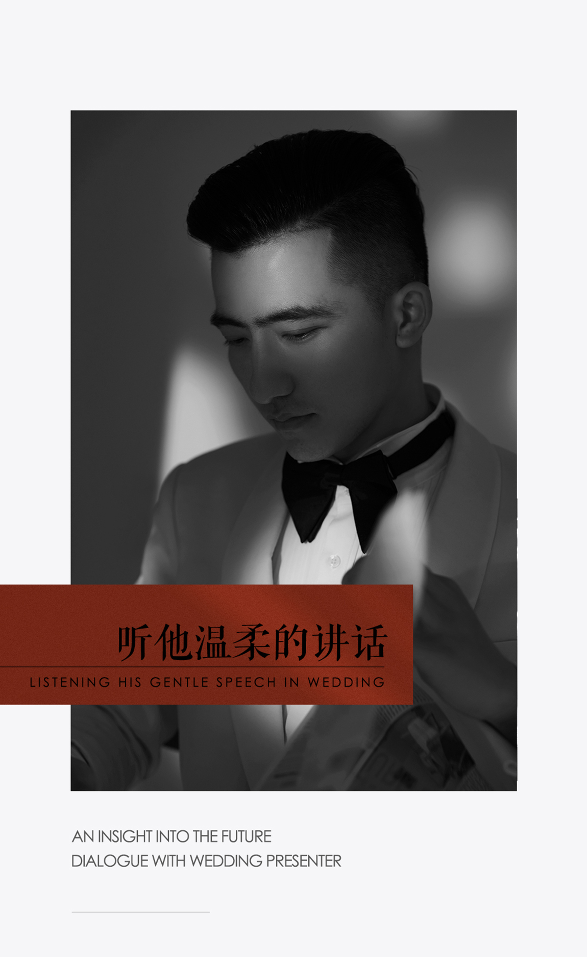 在刘洋的介绍里,他是「一名老兵的儿子,一位温柔妈妈的小子,一位可爱姑娘的丈夫,一名新手奶爸」,而关于职业,他总是选择放在最后。作为一名从业9年的职业婚礼主持人,他笃信情感中的无形力量,他从自己的多个身份中感受过,也在一场场婚礼中用语言传递着。