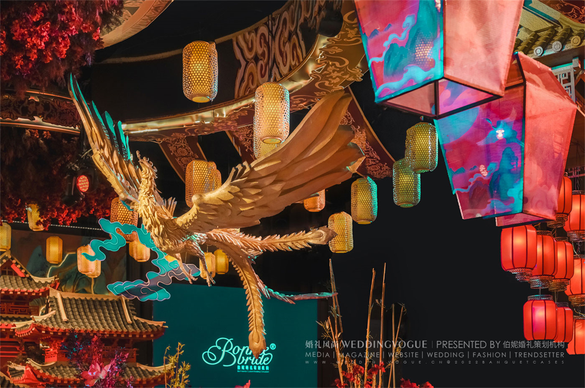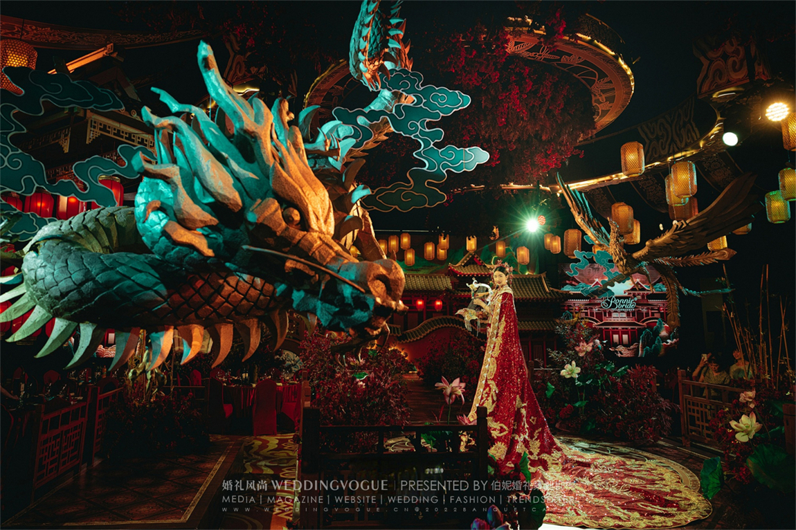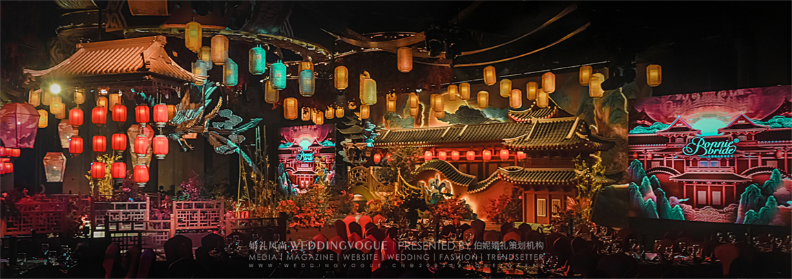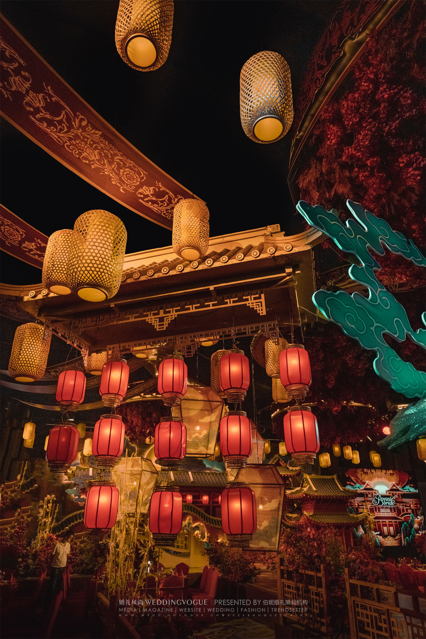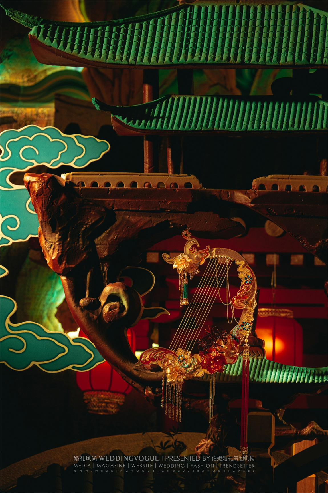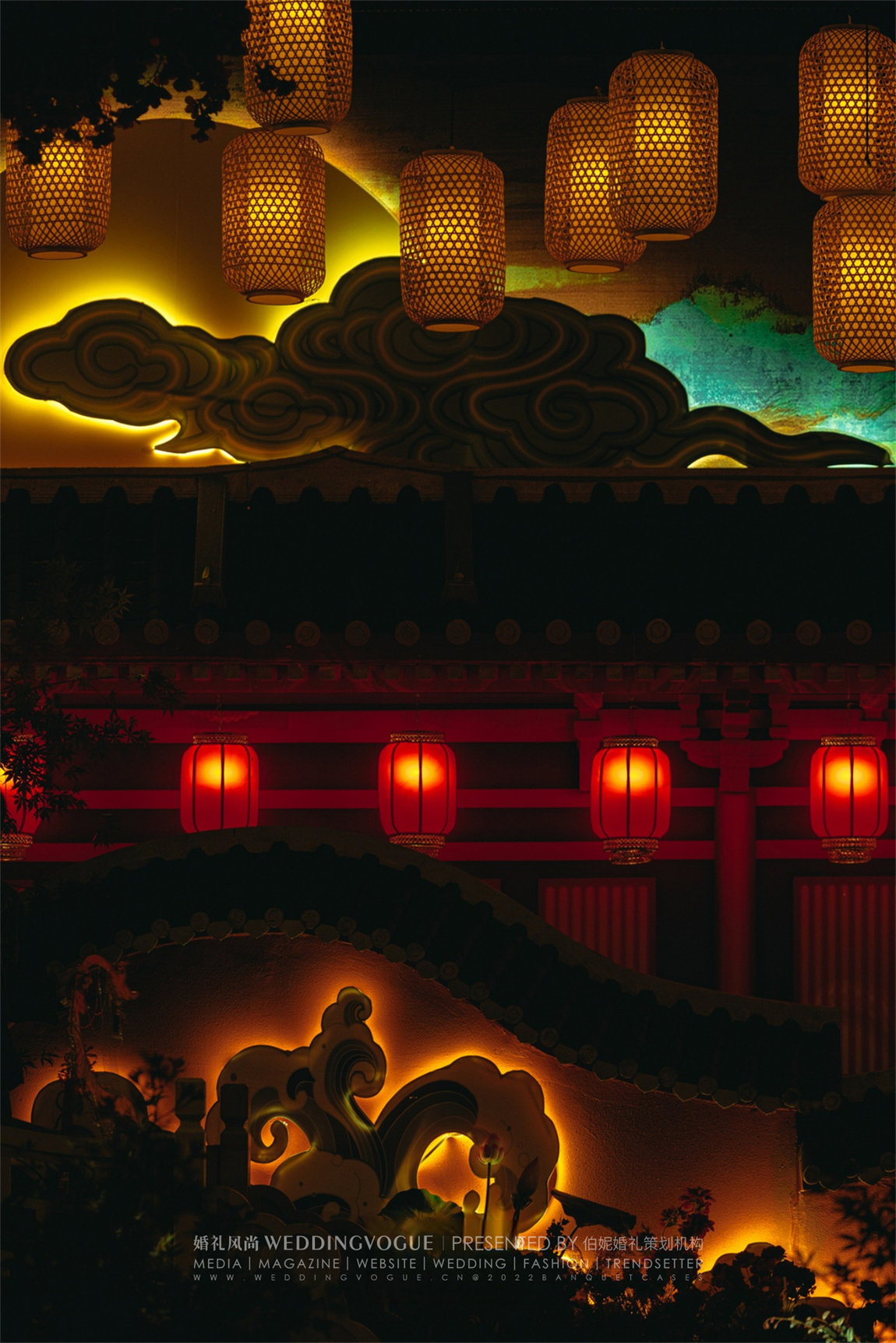 热衷传扬中国传统文化的伯妮与热爱国风文化的新人一拍即合,从筹备到构建这场宋式建筑风雅韵婚礼,仅仅用时三个月,便展开了这梦中琼楼之绝美画卷。