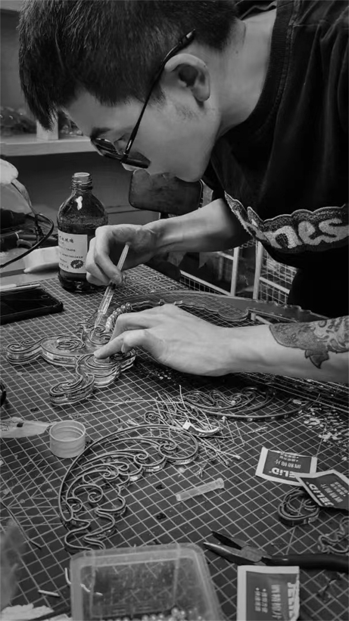 从绘图到雕刻,从胚体制作到手工上色,烧蓝、串珠、造花液,十八般手艺齐上阵,历经11小时,造就这一“传世”凤吟箜篌。