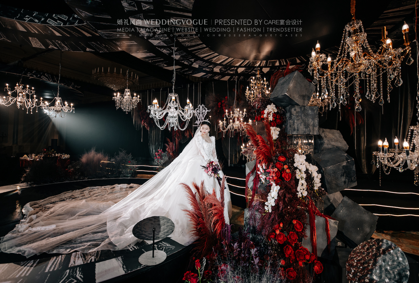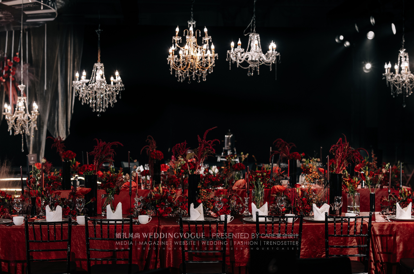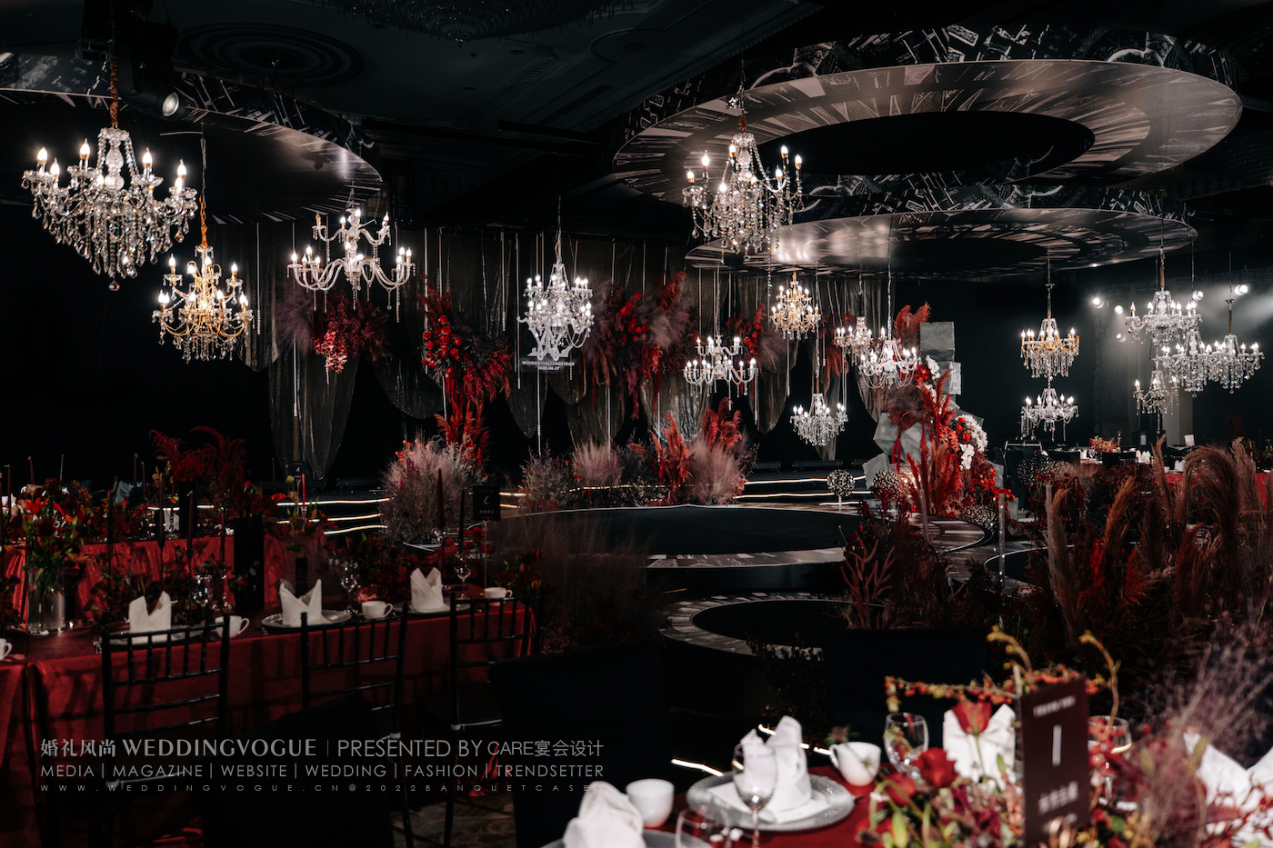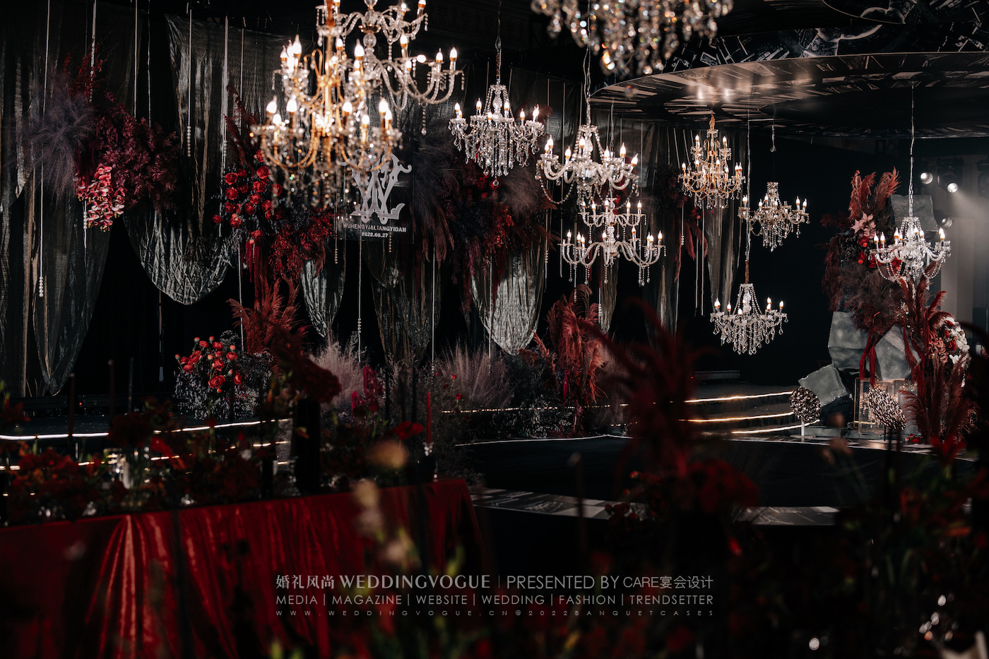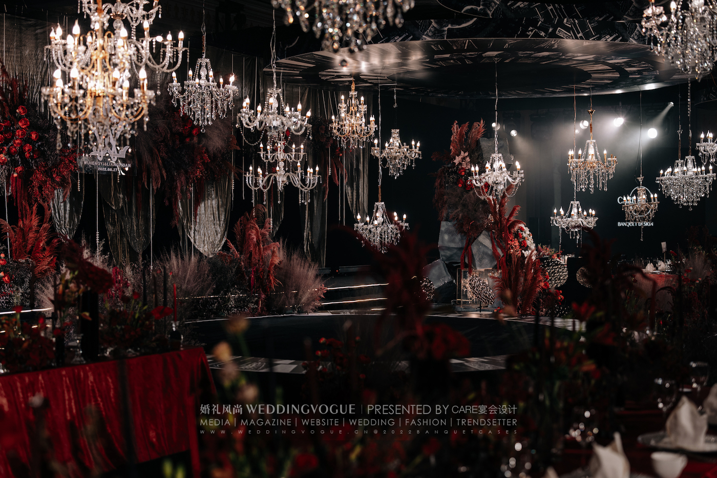 真实婚礼 | 一场红黑色系现代秀场婚礼,实现水晶灯的自由