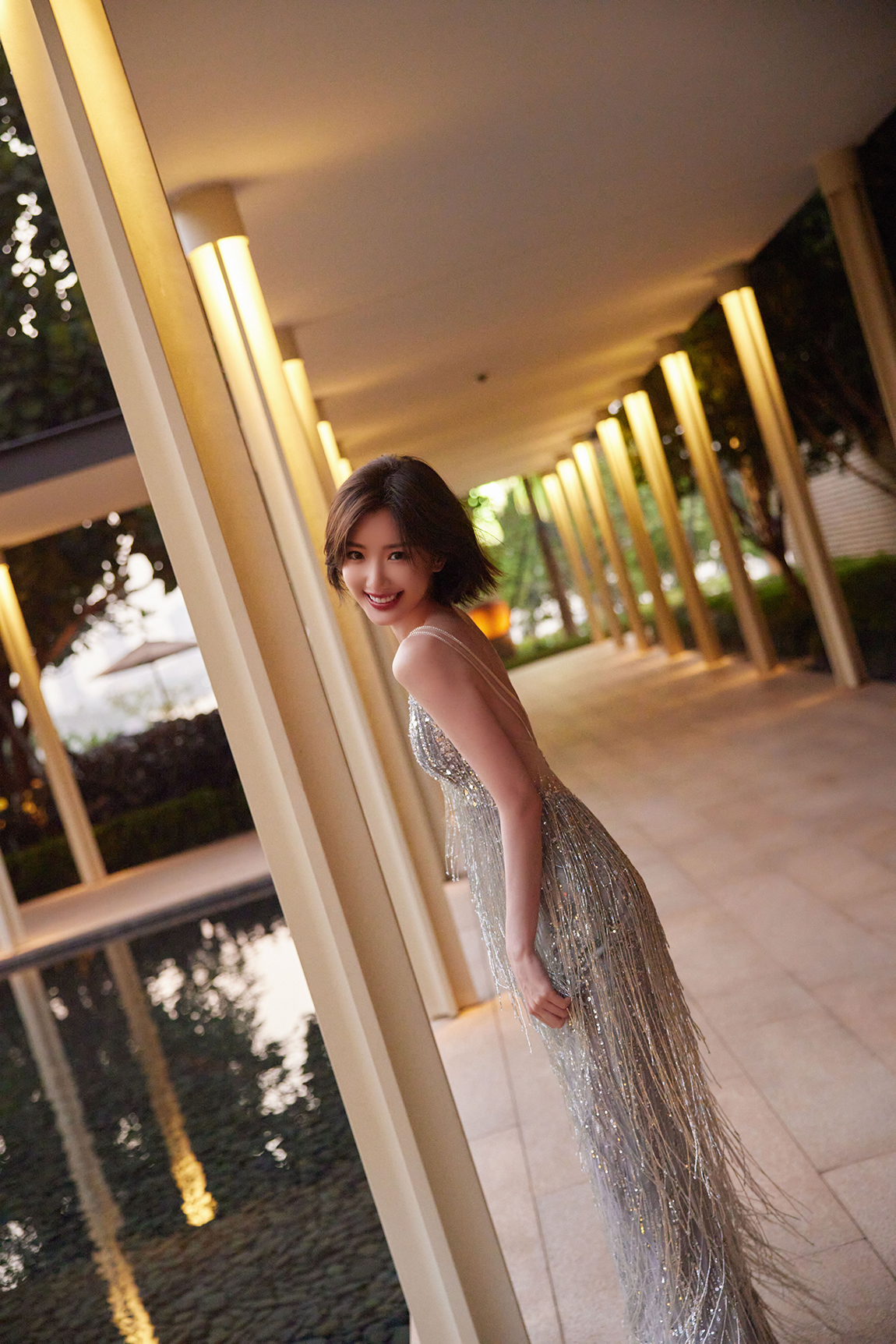 同样位于长廊,可以选择亮色礼服像毛晓彤一样,在极具空间感的氛围中选择强调动感,随性抓拍。也可以像文咏珊一样优雅摆拍。