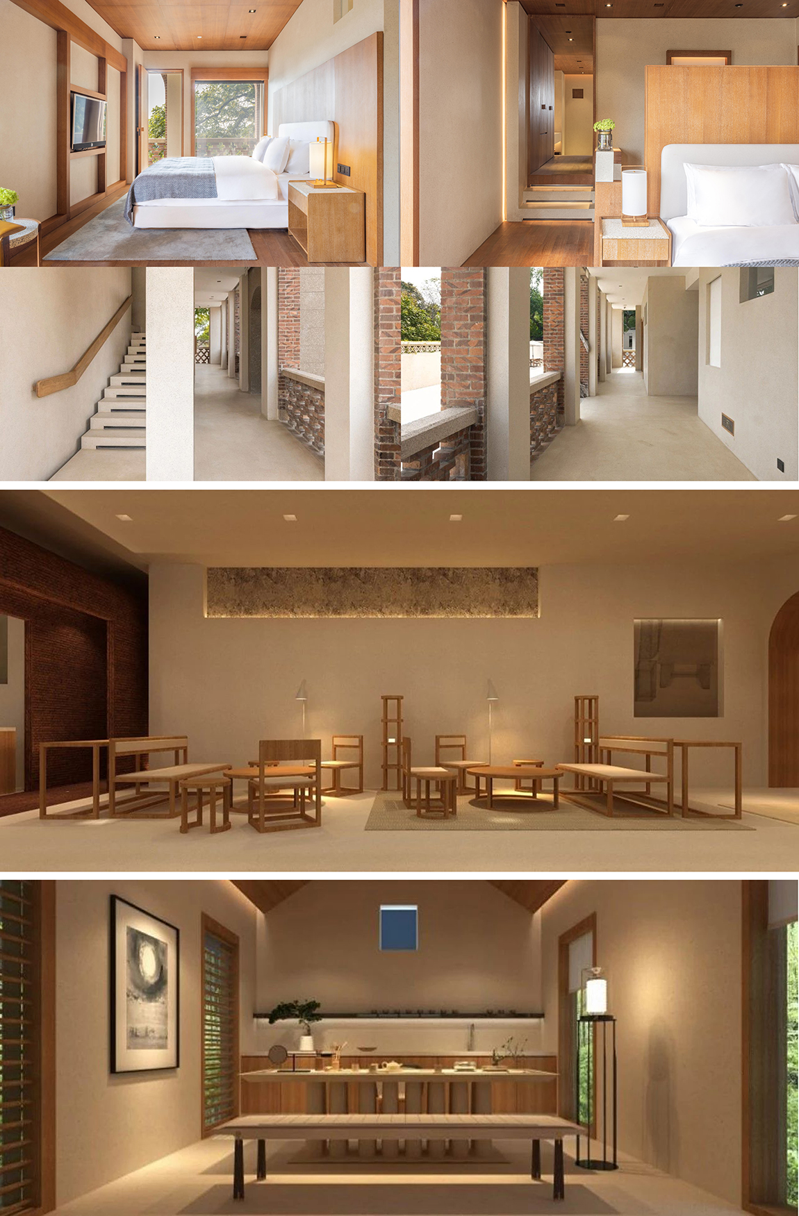 天井式建筑设计在园林艺术的助力下,让酒店拥有非常多的静谧空间。连接建筑之间的长廊伴着水系,非常适合让新郎静静等待他的新娘。