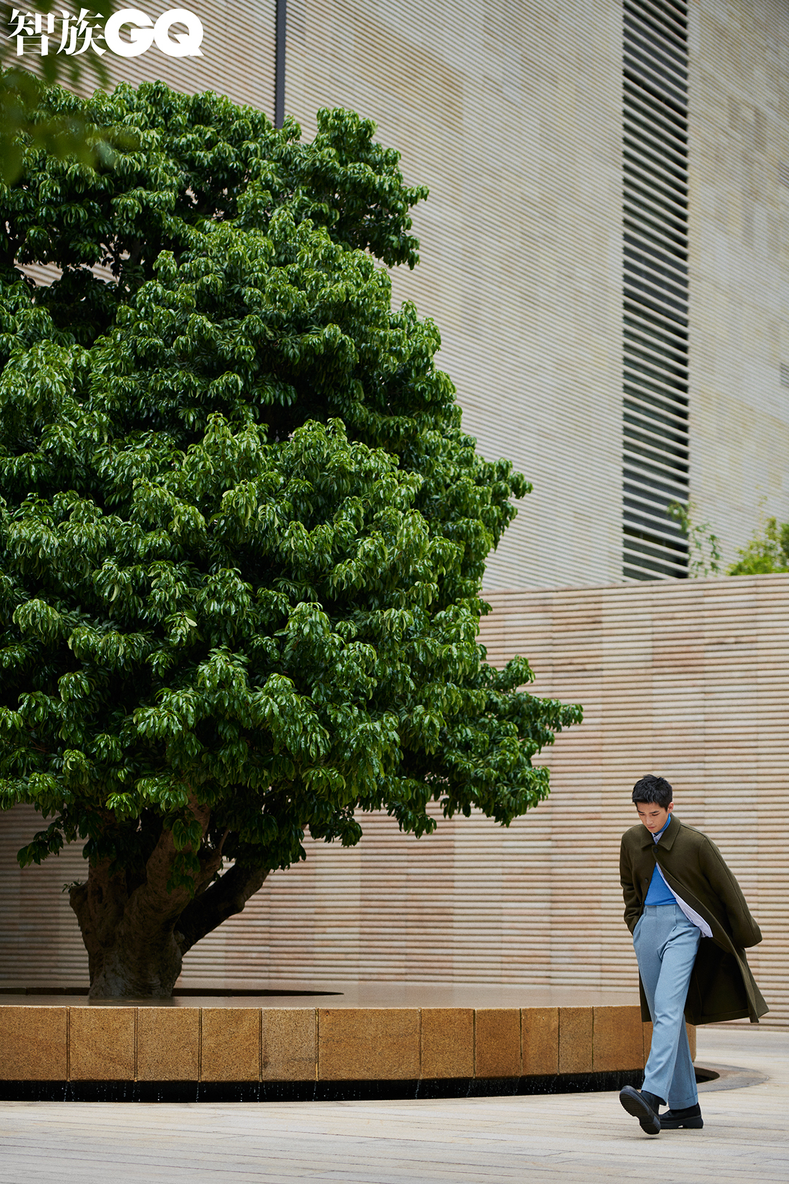 酒店落客区,标志性的荔枝树枝叶繁茂,象征着富贵吉利。四季不同的绿色,在锈石背景呈现出的低饱和度暖黄色映衬下,恰恰需要亮色点缀。