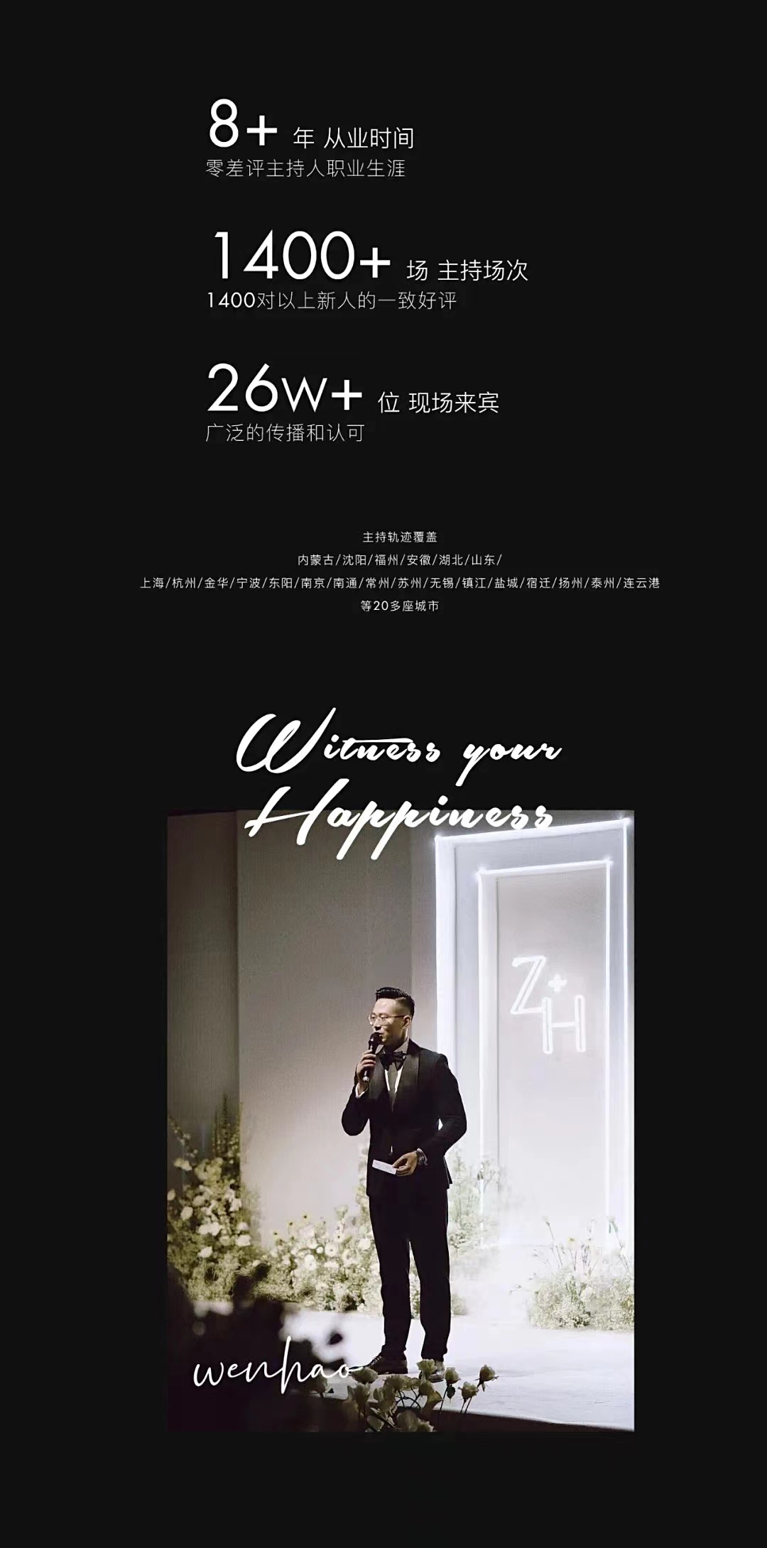 1400+场主持场次,1400对以上新人的一致好评……