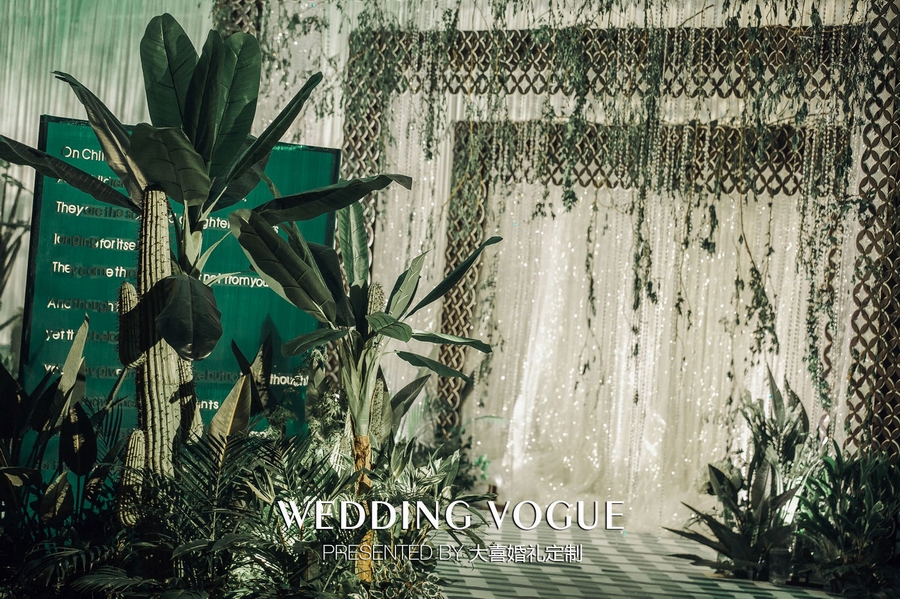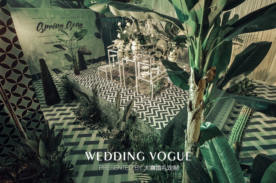 四月是不负春光,而关于春天,白绿色系的本身便是清新自然的一种呈现。在以“春”为表达元素,“春呐”为婚礼秀主旨的这场