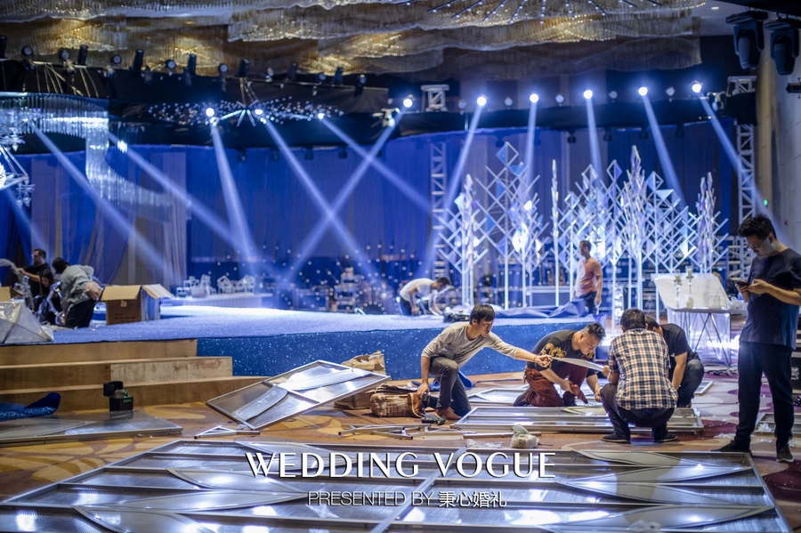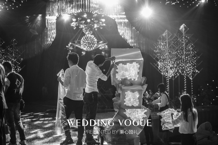 这场独出心裁的大秀,秉心婚礼仅用12个小时搭建完成。凌晨进场,近200盏灯光,繁复的铁艺造型,灵动流畅的空中曲线设计,形体化矿石、森林、极光、泉水、星空,这些神秘莫测的事物转眼以亲切的面孔出现在宴会厅内,是秉心婚礼团队协作能力的体现,也是秉心婚礼拥有无限可能性的直接表达。