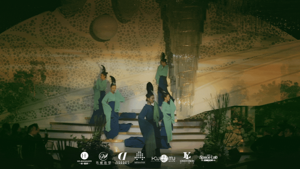 即在同一个宴会空间,通过声光电、全息视觉、数控升降球等设备,既可以呈现简约西式的风格,也可以摇身一变呈现中式汉唐风格。