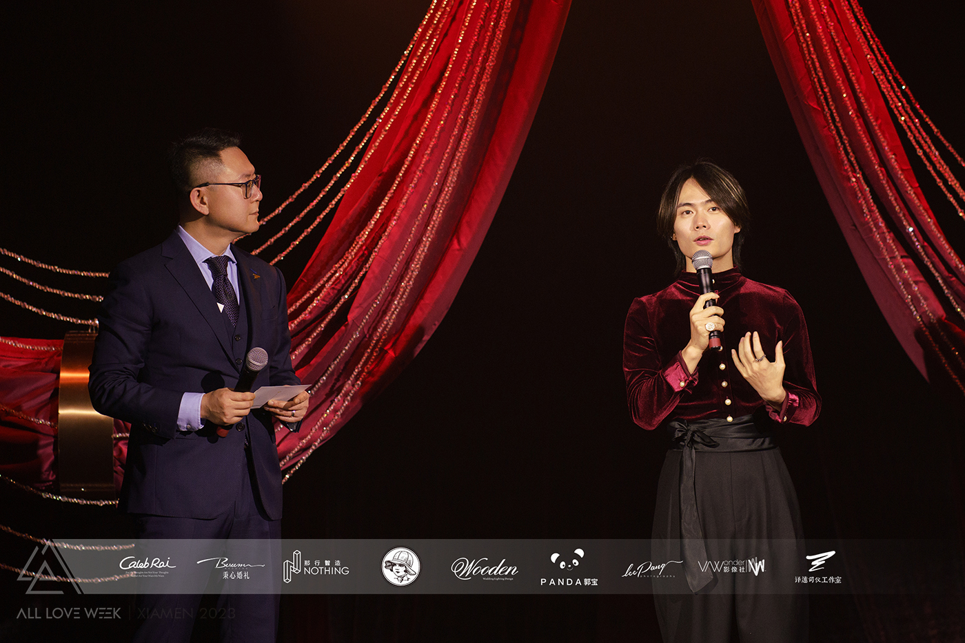 赖梓愈CalebRAI和老搭档主持人王瑱再次同台合作,以设计师和主持人对话的方式为大家诠释了这场设计的深层次含义,带来了一场耳目一新的宴会设计发布。