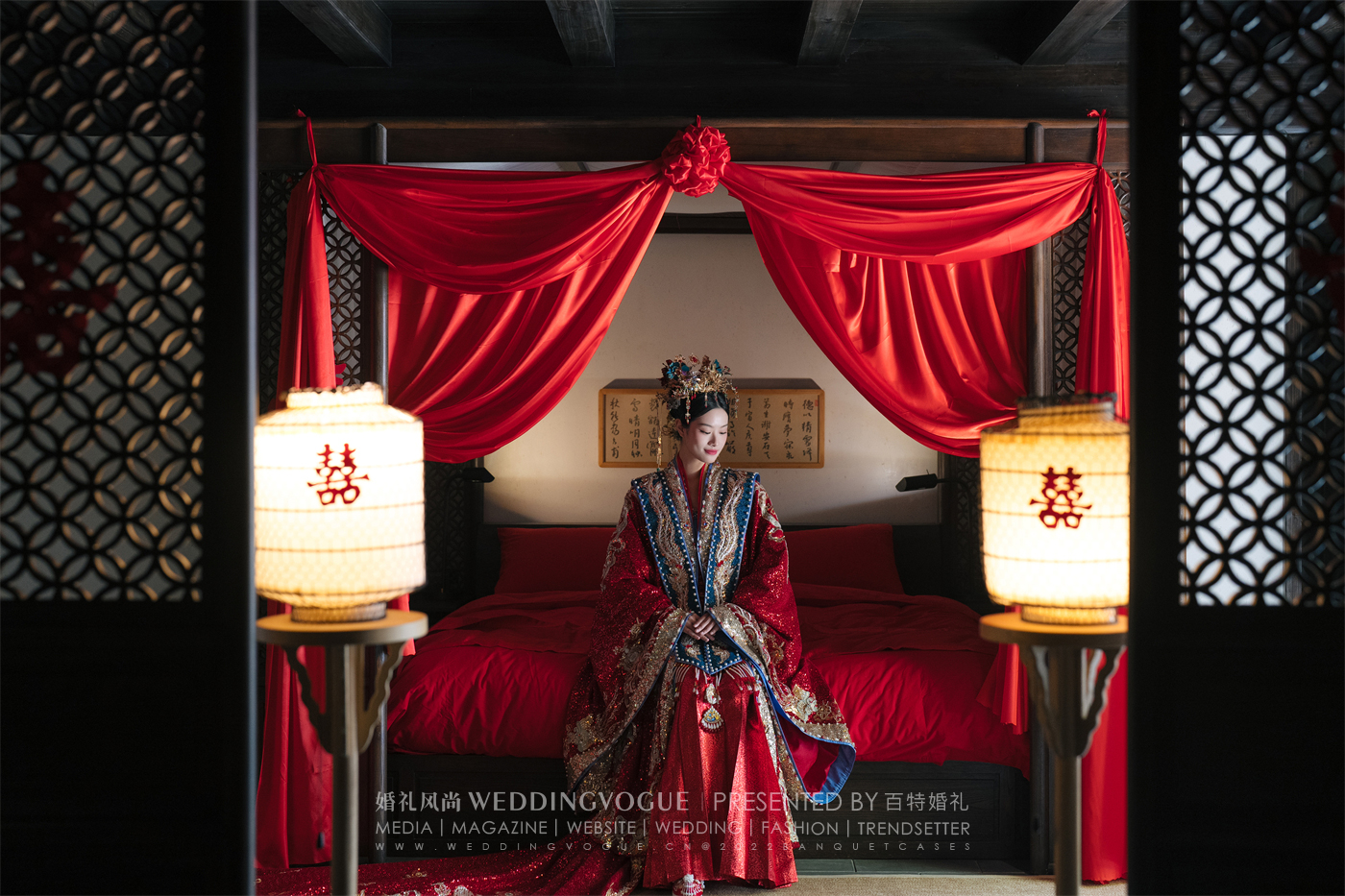 古琴渺渺,仿若穿越千载时光,凤冠霞帔,同牢合卺,诗咏宜家,敦百年之静好。中国红和充满东方元素的婚房布置,传递良缘之美的中式婚服实在太让人心动。