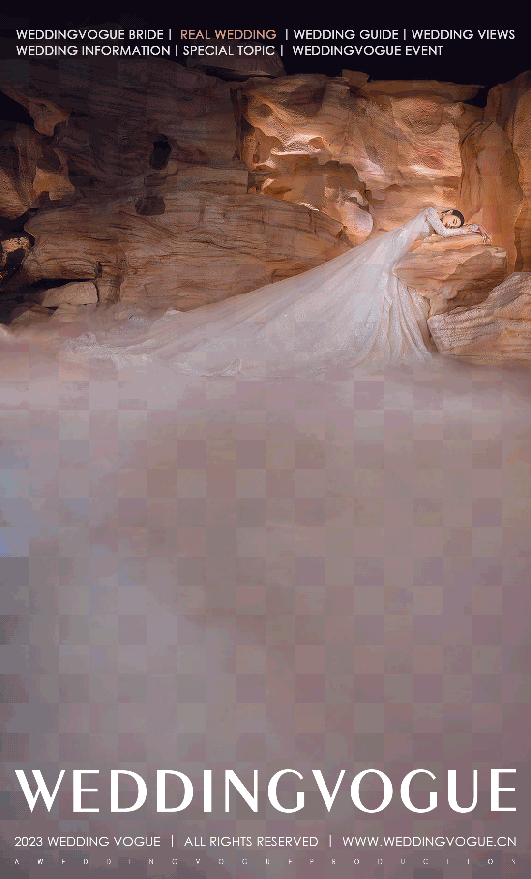 新娘绰约曼妙的身姿自然凸显而融于奇境