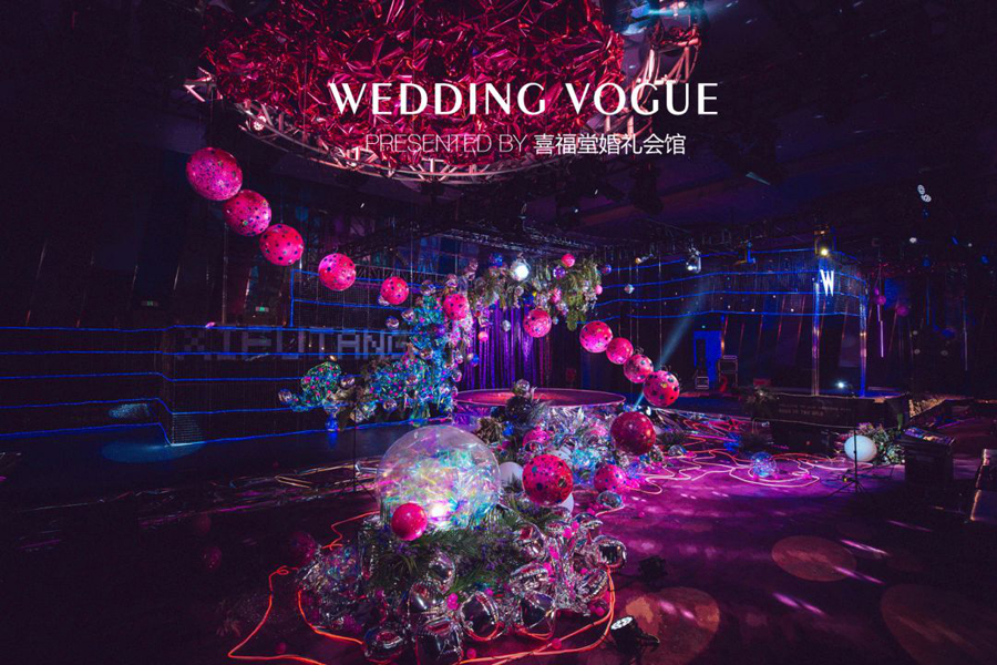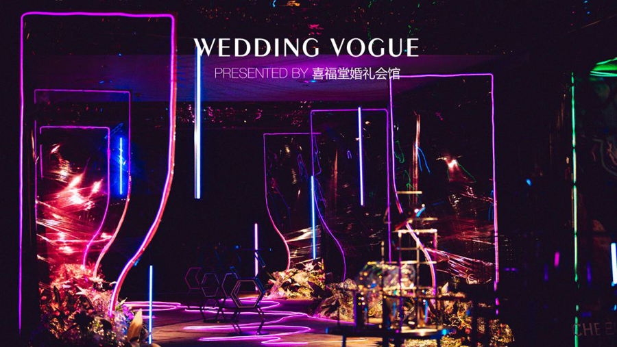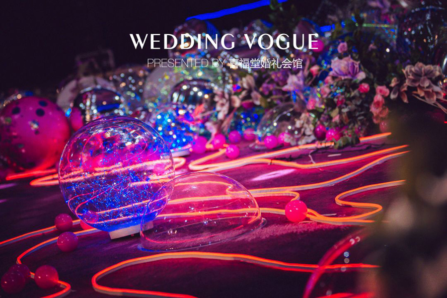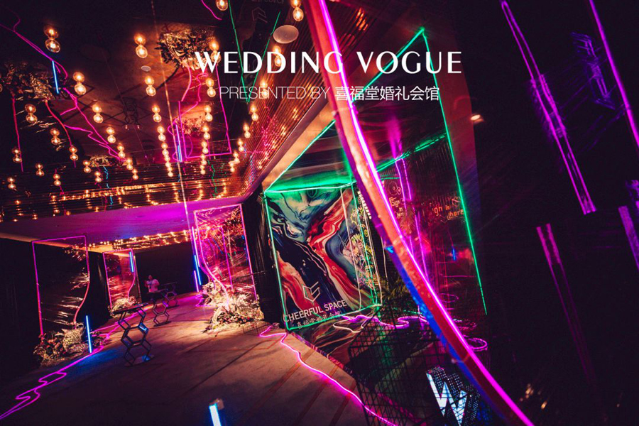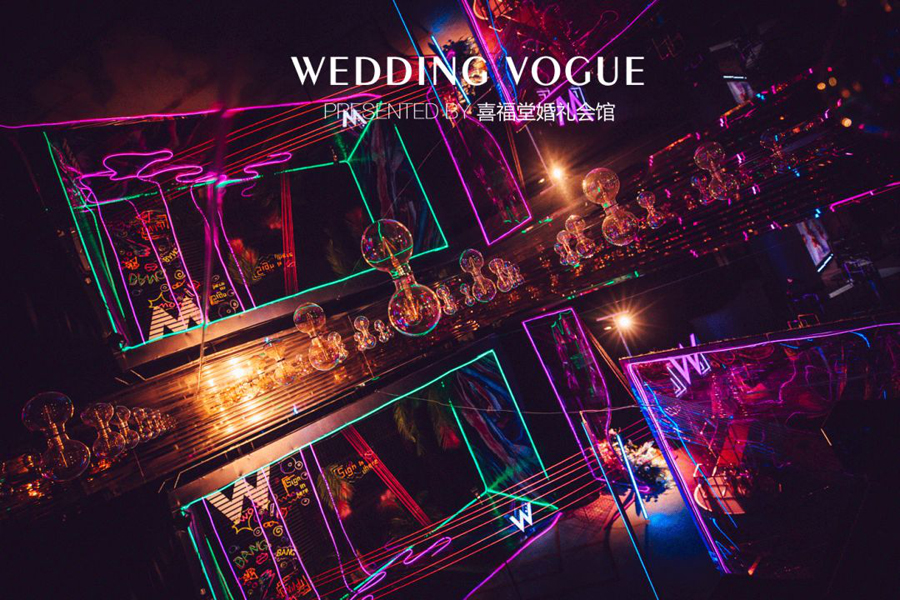 此次婚礼秀活动旨在传递W大胆、追求极致、超越了奢华固有边界的生活态度,向追求时尚、完美、活力无限的新人打造一场殿堂级婚礼盛宴。设计师用玫红荧光撩拨爱情的视觉,用Cyberpunk科技感、波普光感营造陷入爱情的心跳感,在灯光的照射下,点燃新人之间爱情的火花,没有一点杂质!觥筹交错的现代摩登,搭配苏式古城的撩人妩媚,婚礼秀一开场,wake up,打开了身体每一寸爱情的细胞。