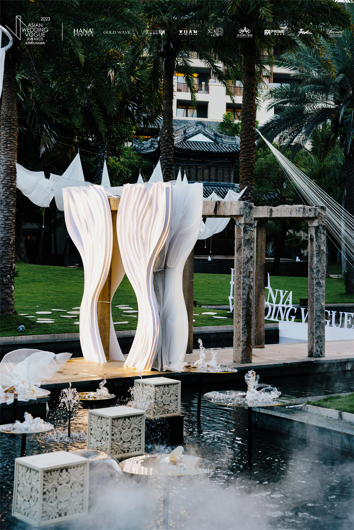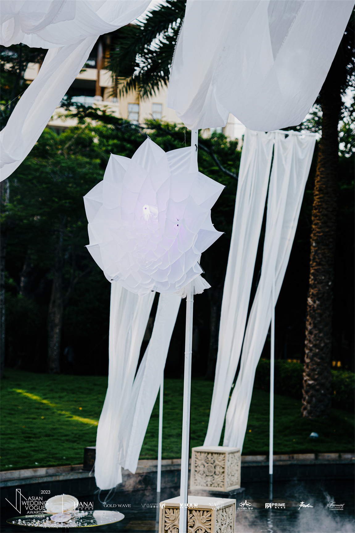 7月11号,首次亮相亚洲婚礼风尚盛典宴会设计发布的HANA宴会设计美学在三亚海棠湾开维费尔蒙酒店的石库门和对亭,为大家带来了一场五感疗愈之旅。