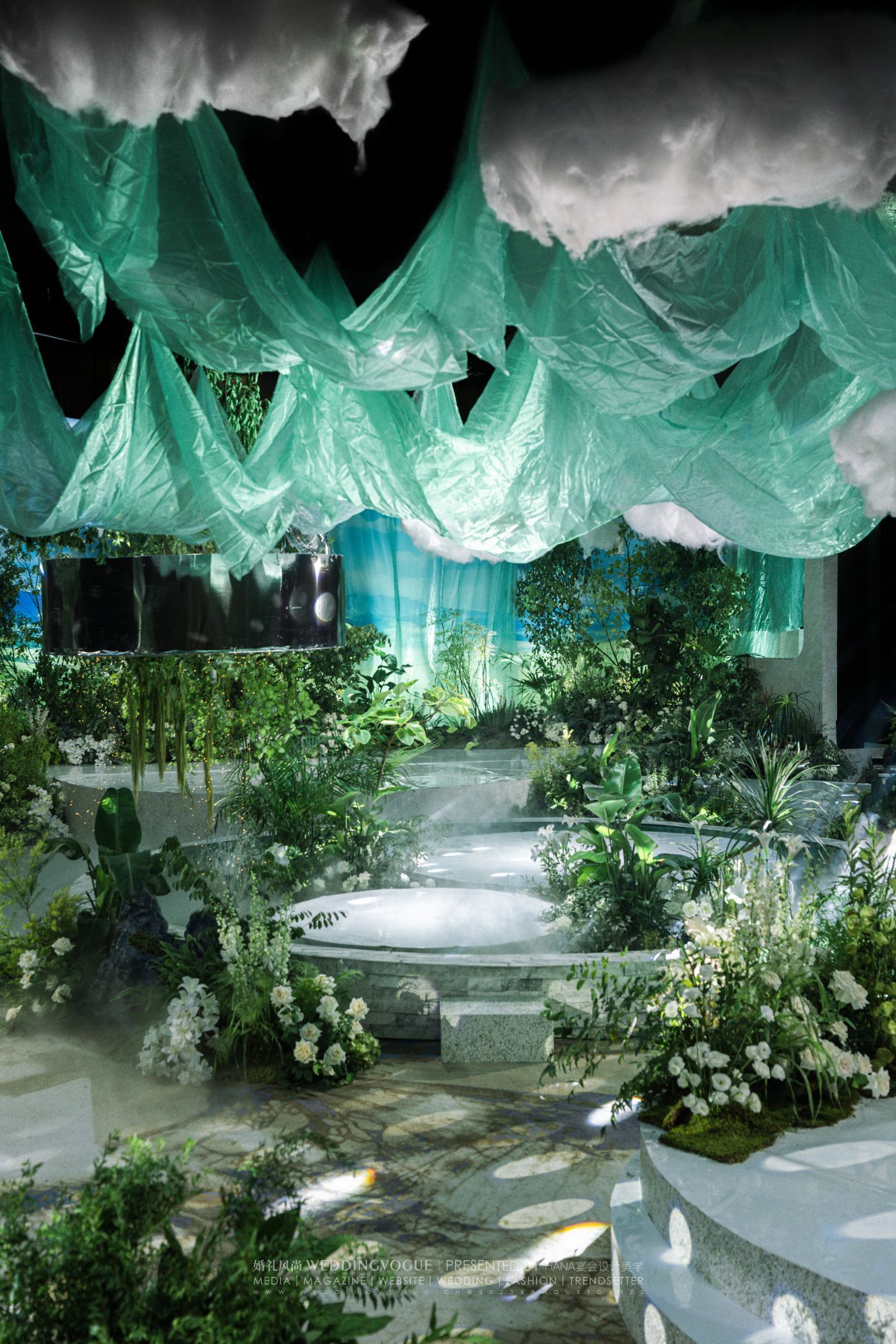 HANA在不到半个月的筹备时间中,将酒店以绿草、高树层叠铺展,并通过水流、风动的装置设计,拟造出现场自然的气息。