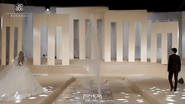 舞台中心的喷泉涌动,让极简线条下庄严的场景多出一份跳跃和温柔的基调;