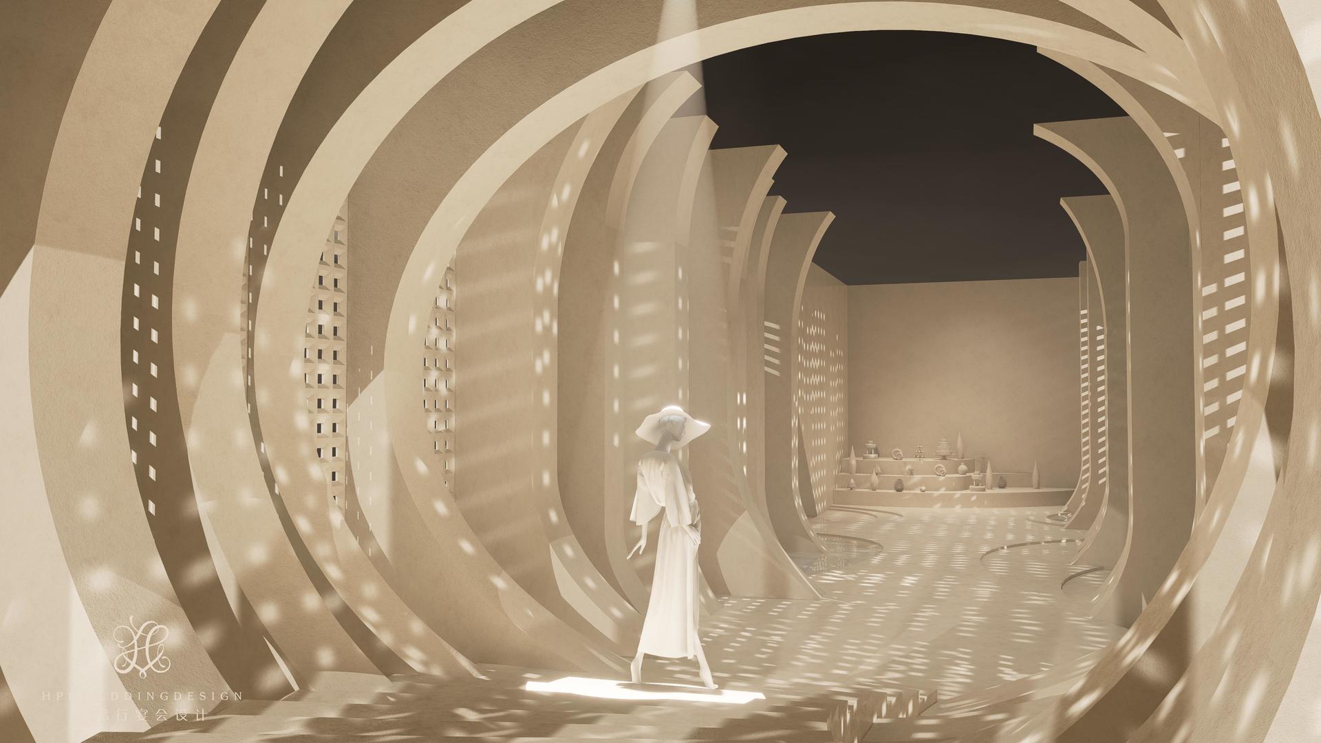 空谷般立体的外厅,演绎为风沙雕饰下的谷壁长廊。