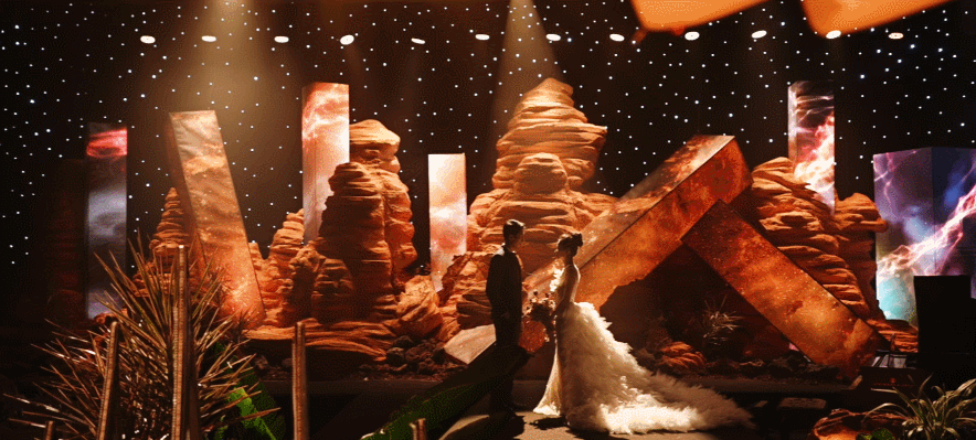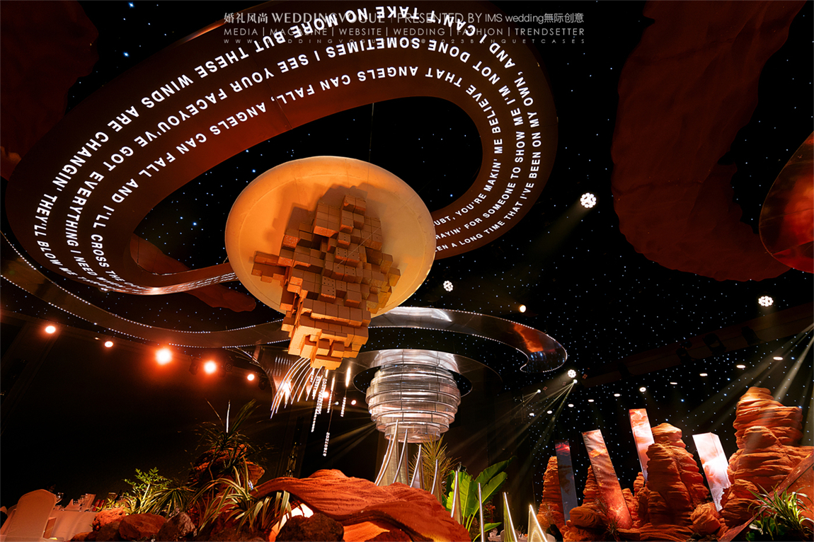 11月21日于浙江西子宾馆(G20峰会宴请各国领导人的宴会厅)带来了一场灵感来源于科幻作品《三体》和《沙丘》的婚礼。