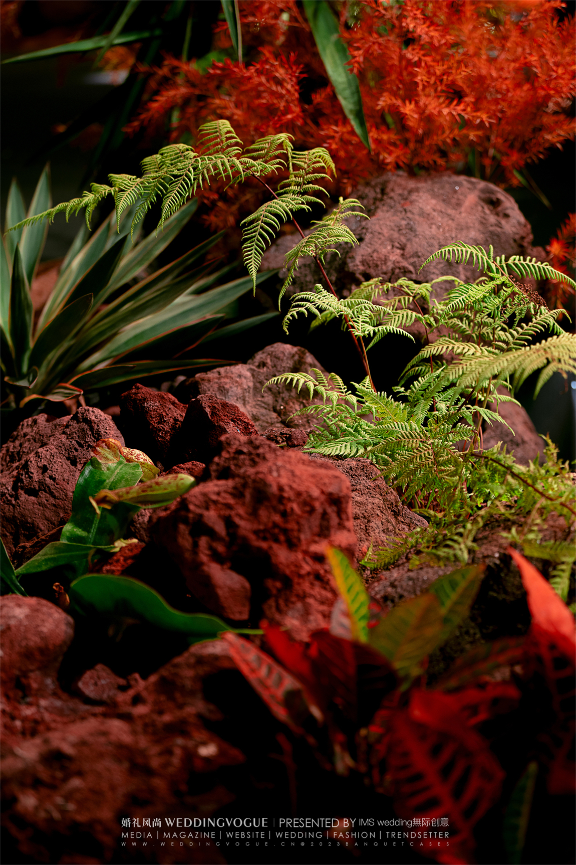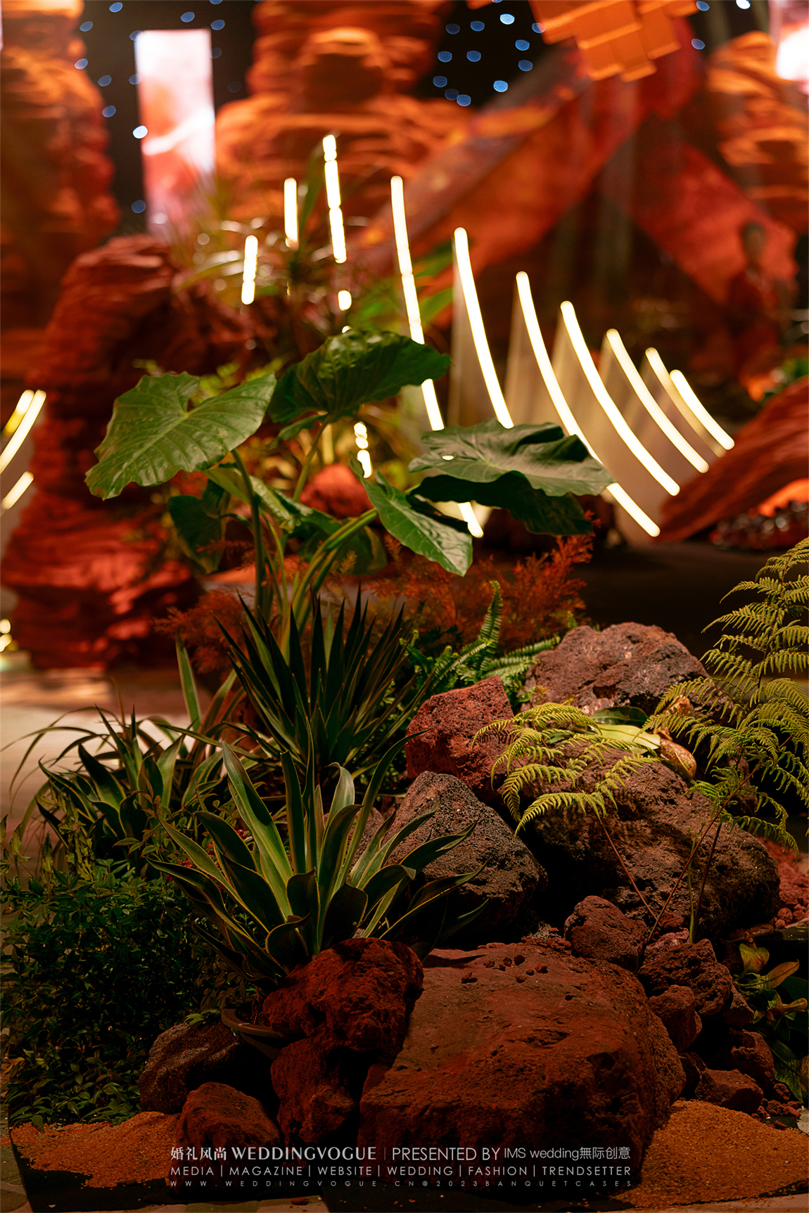 沿着t台更是有很多沙土绿植类的精细装饰,充满生命力的绿植,在火山石的缝隙间顽强的生长。蓬勃的生命力,于无声处诉说着宇宙间的生命奇迹。