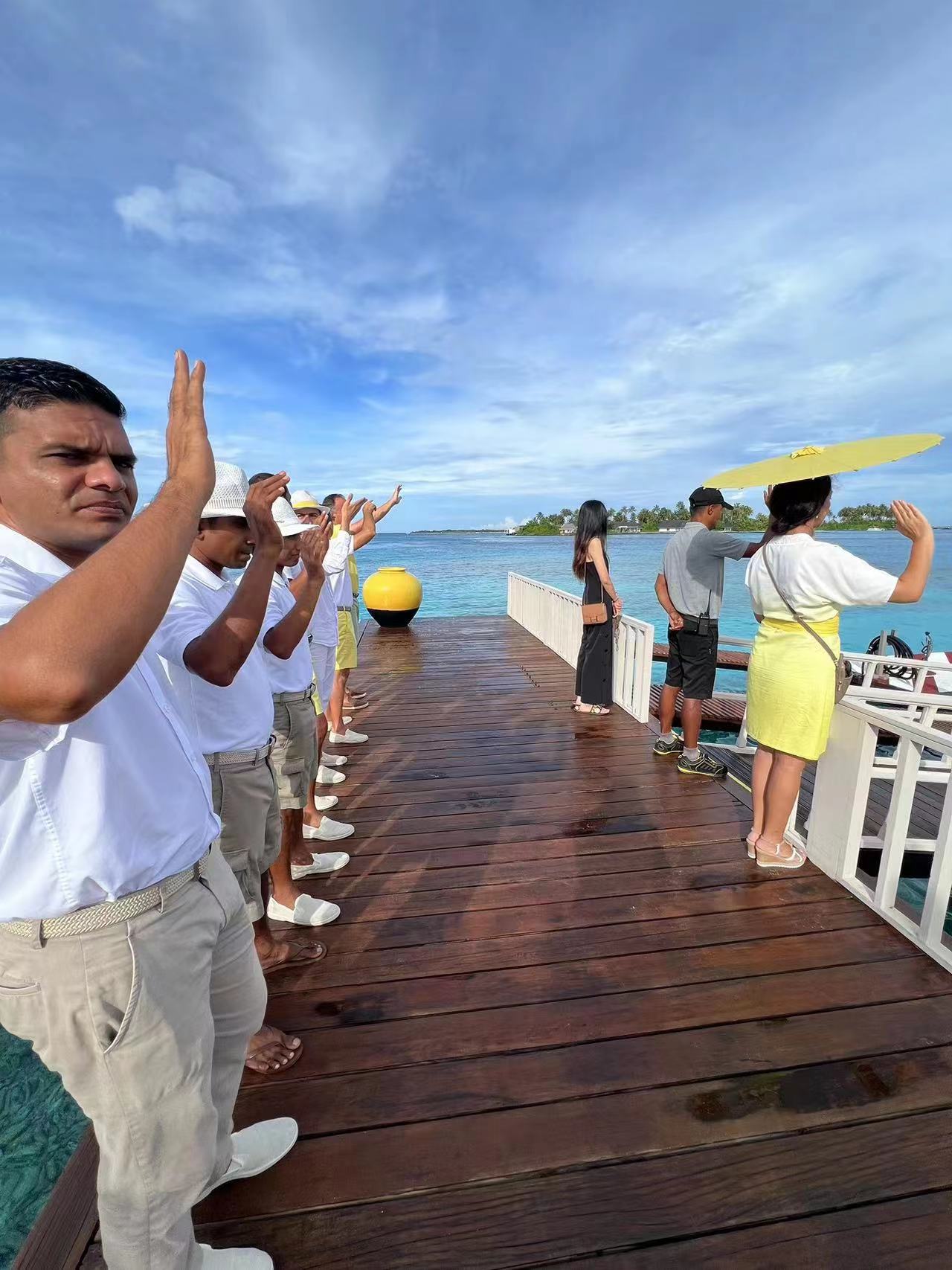 灿烂的阳光和马尔代夫专属的碧蓝海水交相辉映