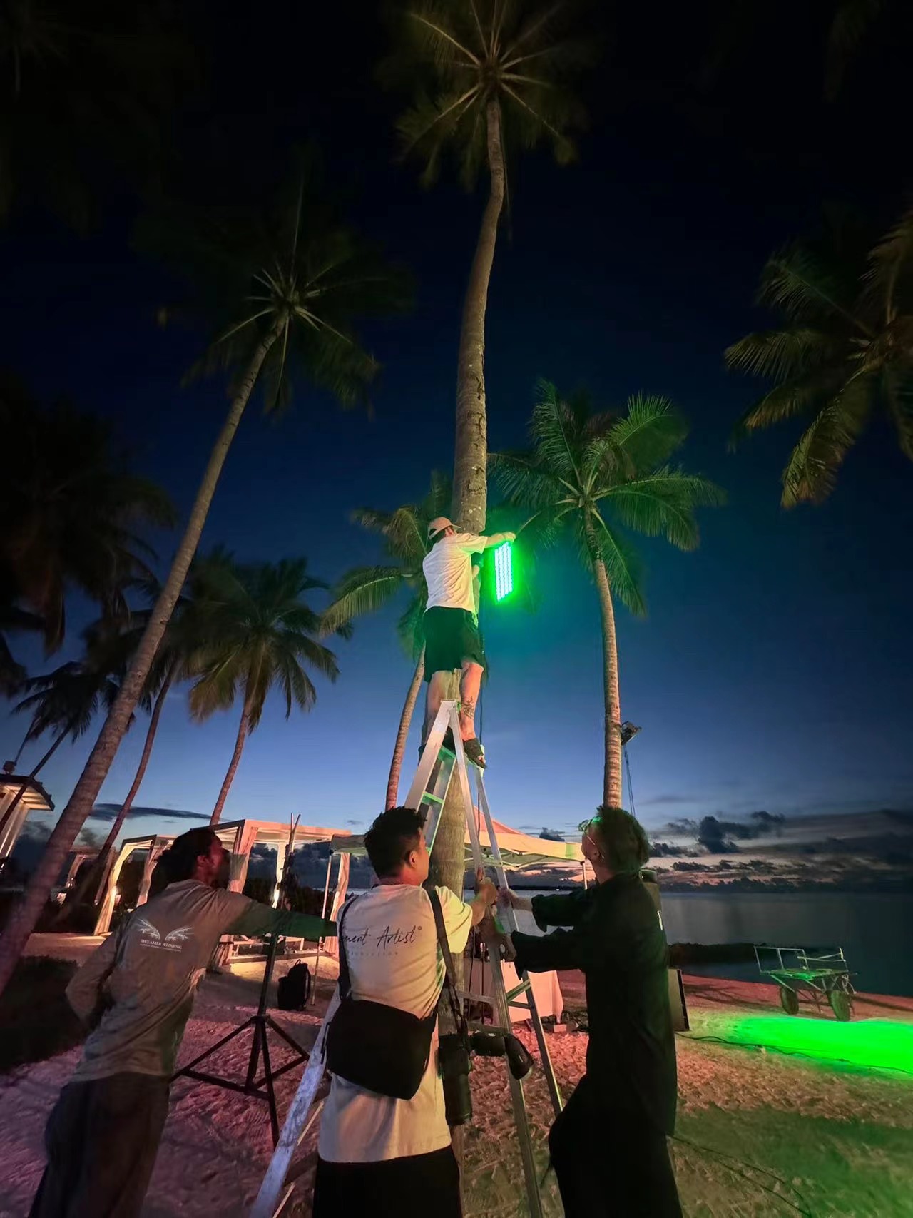 停雨后马上调试现场灯光,因马尔代夫资源匮乏