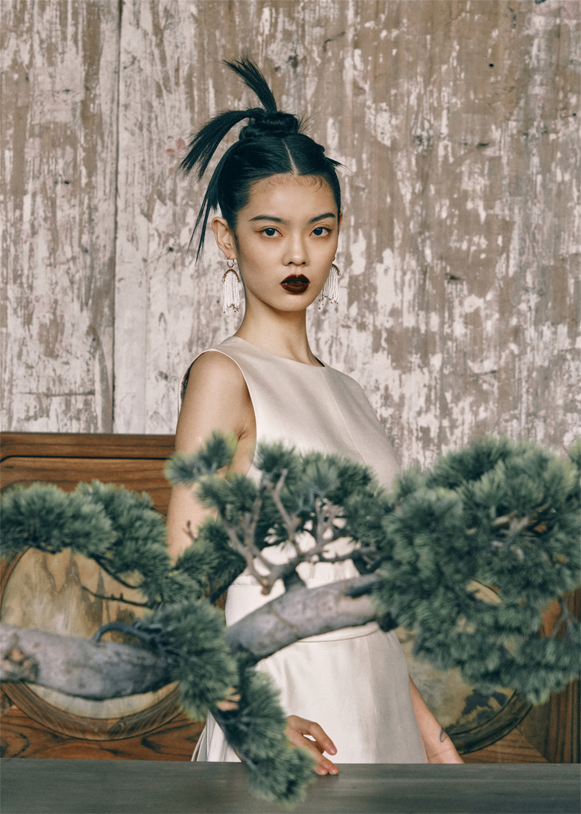 这一种极简的妆容造型刻画,也在此次大片中为我们呈现出了古朴与时尚现代并存的新形象,婉约秀美之中又不失大气。