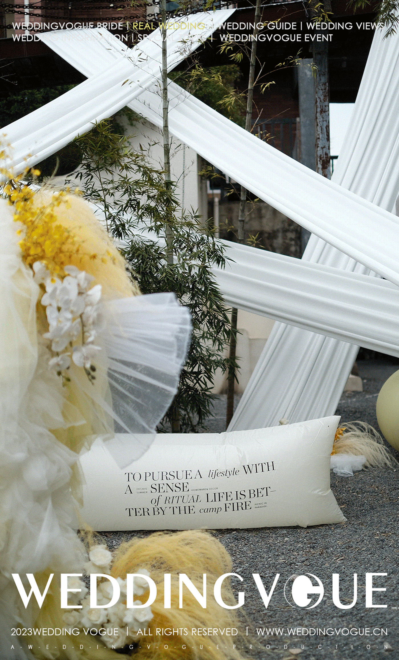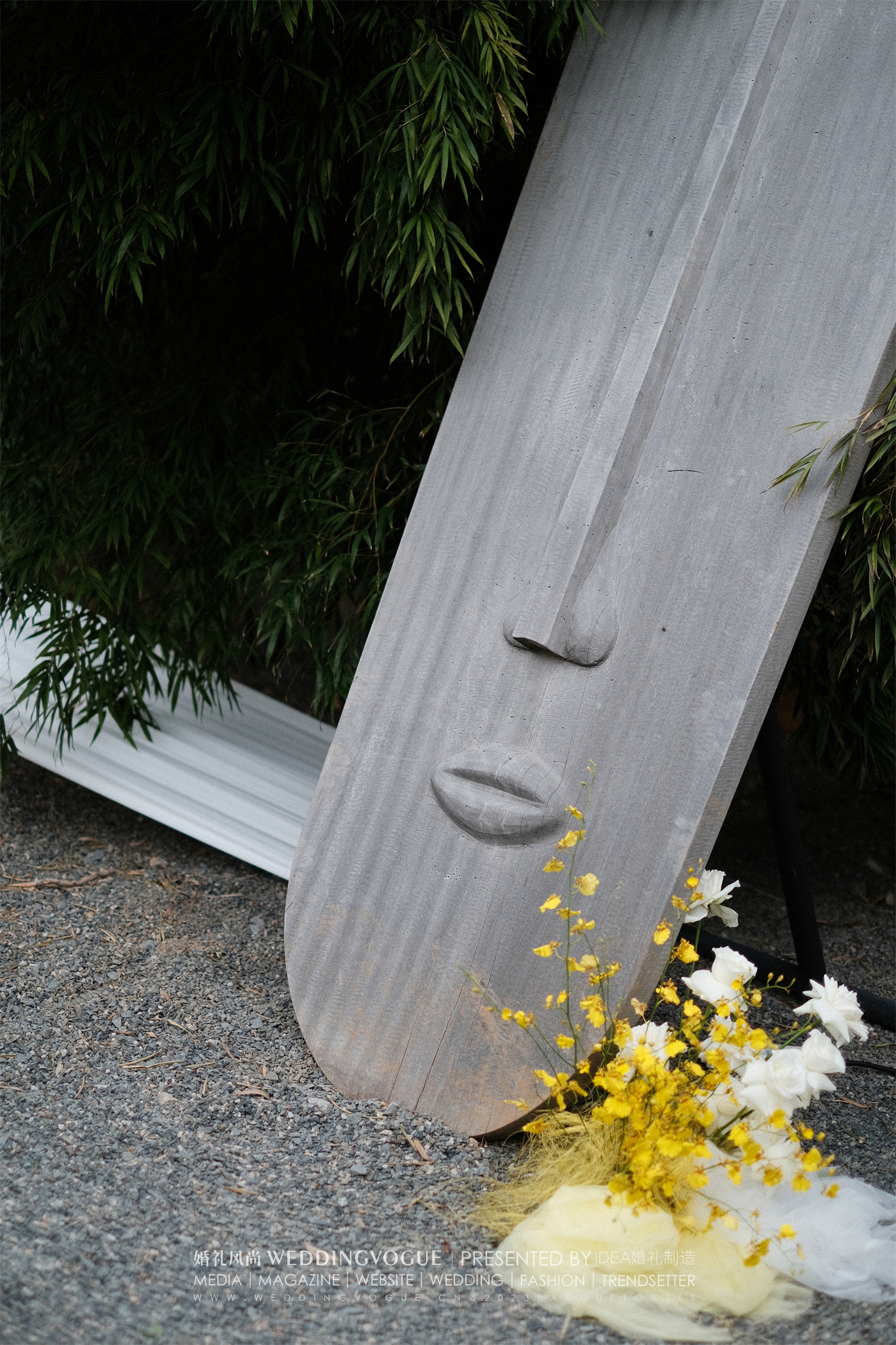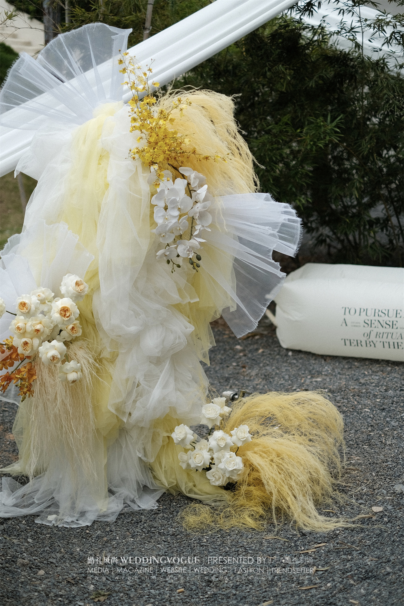 IDEA婚礼企划婚礼仪式户外空间的设计,参考新娘钟爱的明黄色作为主色调。