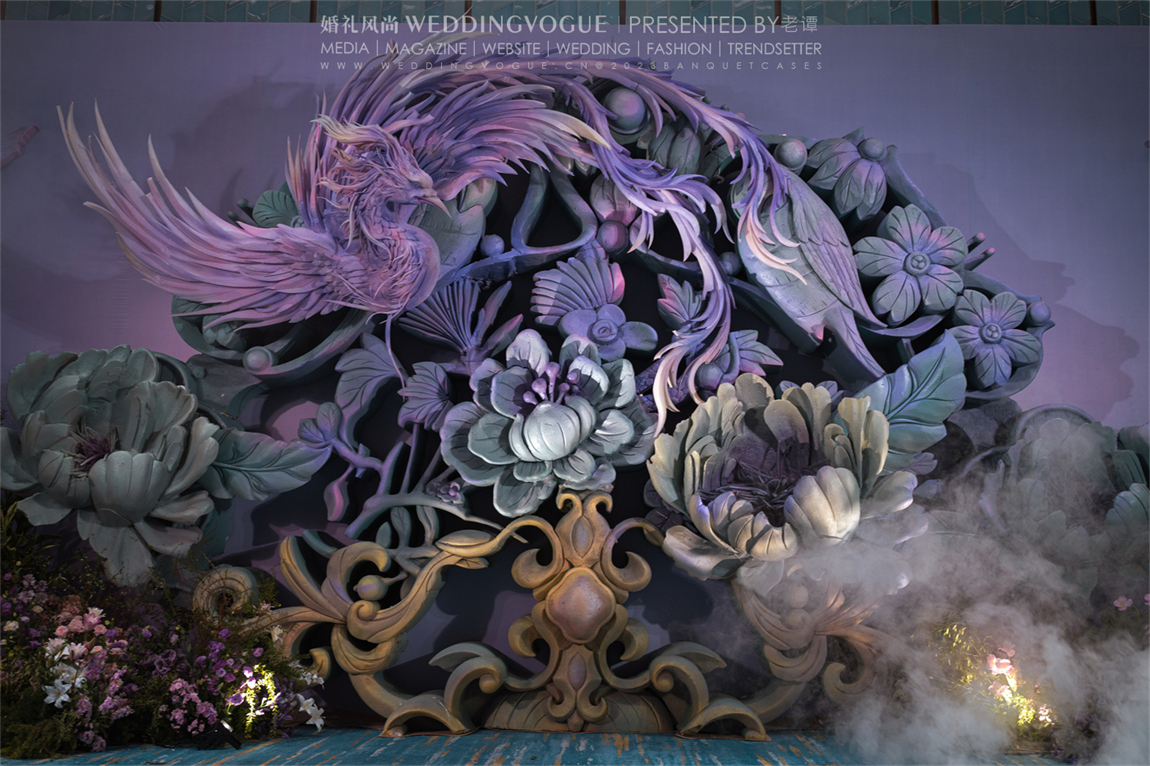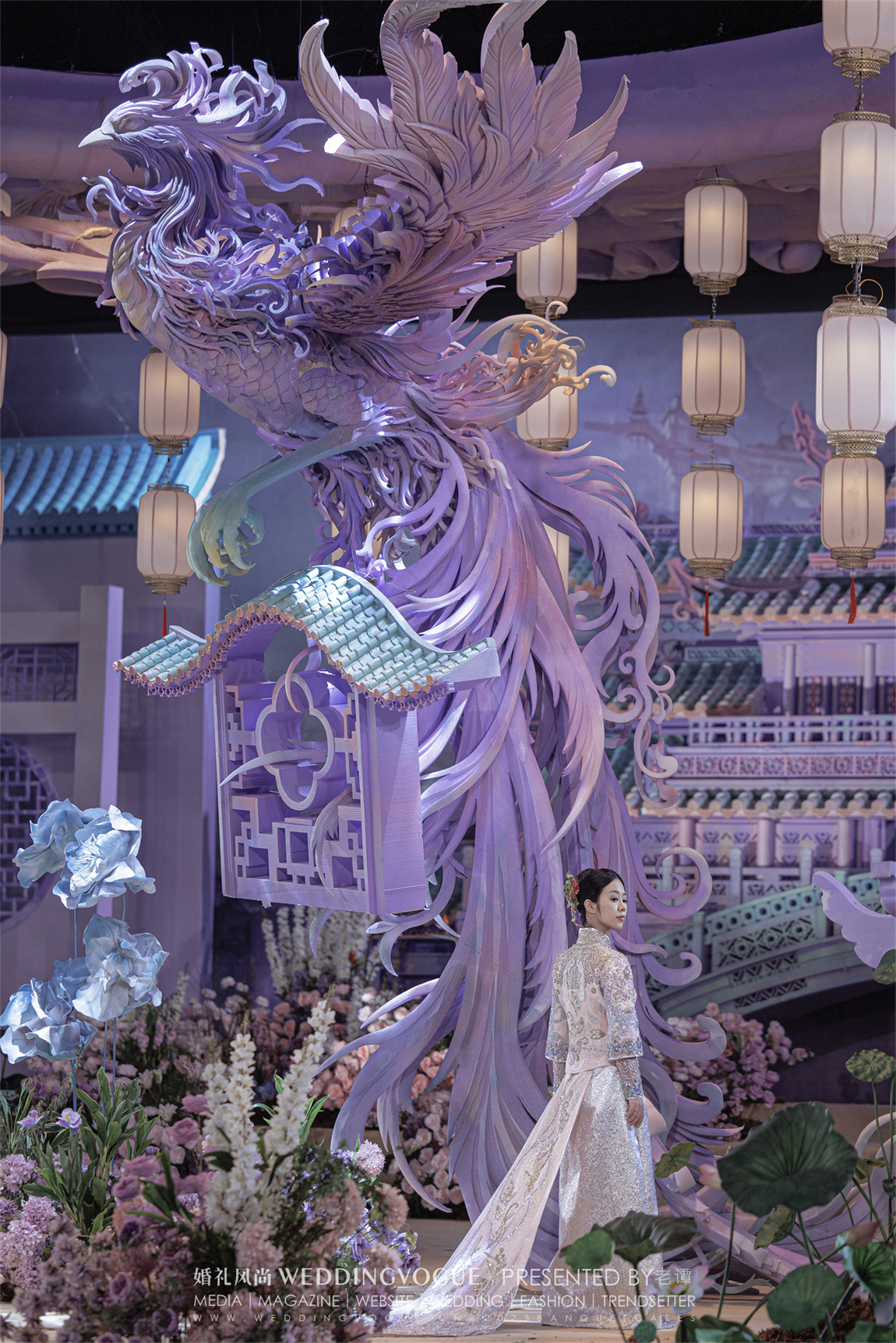 紫色的凤凰是凤中里最神秘和优雅的一种,跟新娘的气质和对婚礼的要求都相得益彰。