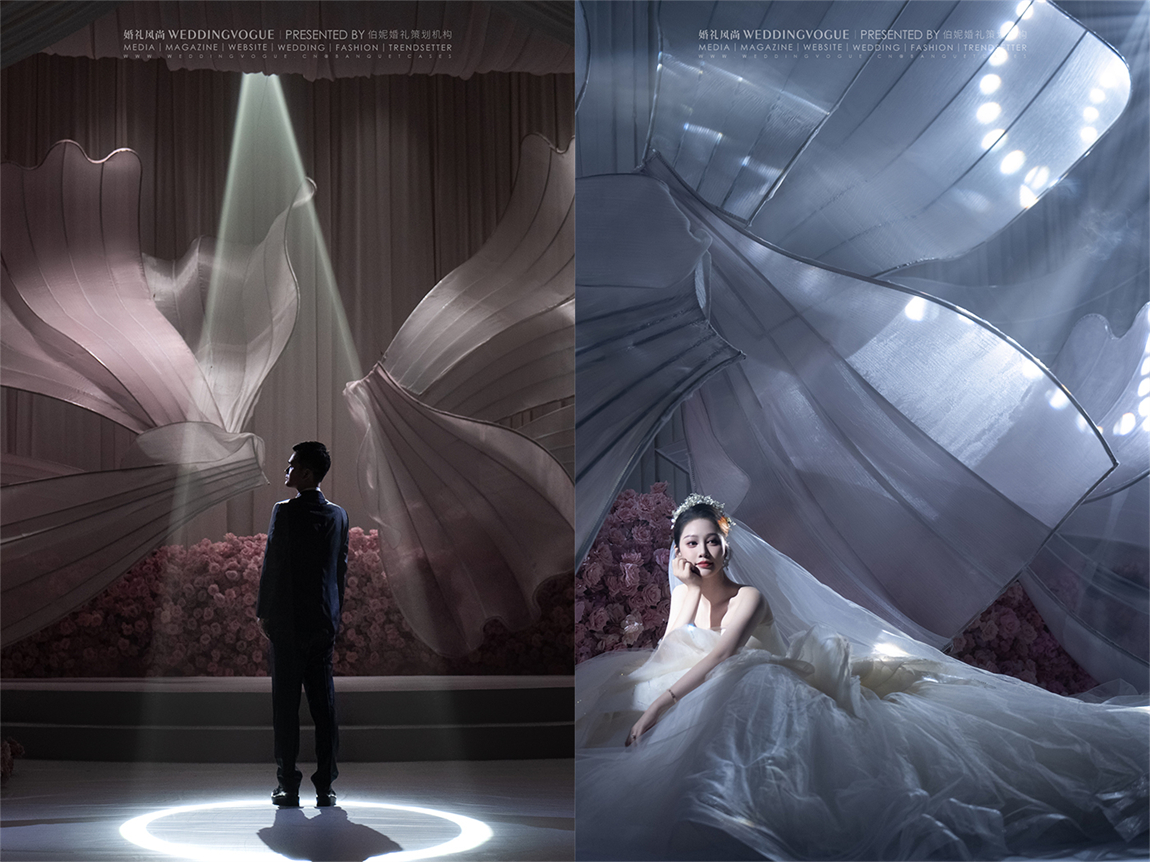 一镜封神!这场粉色布幔秀场风婚礼质感绝了