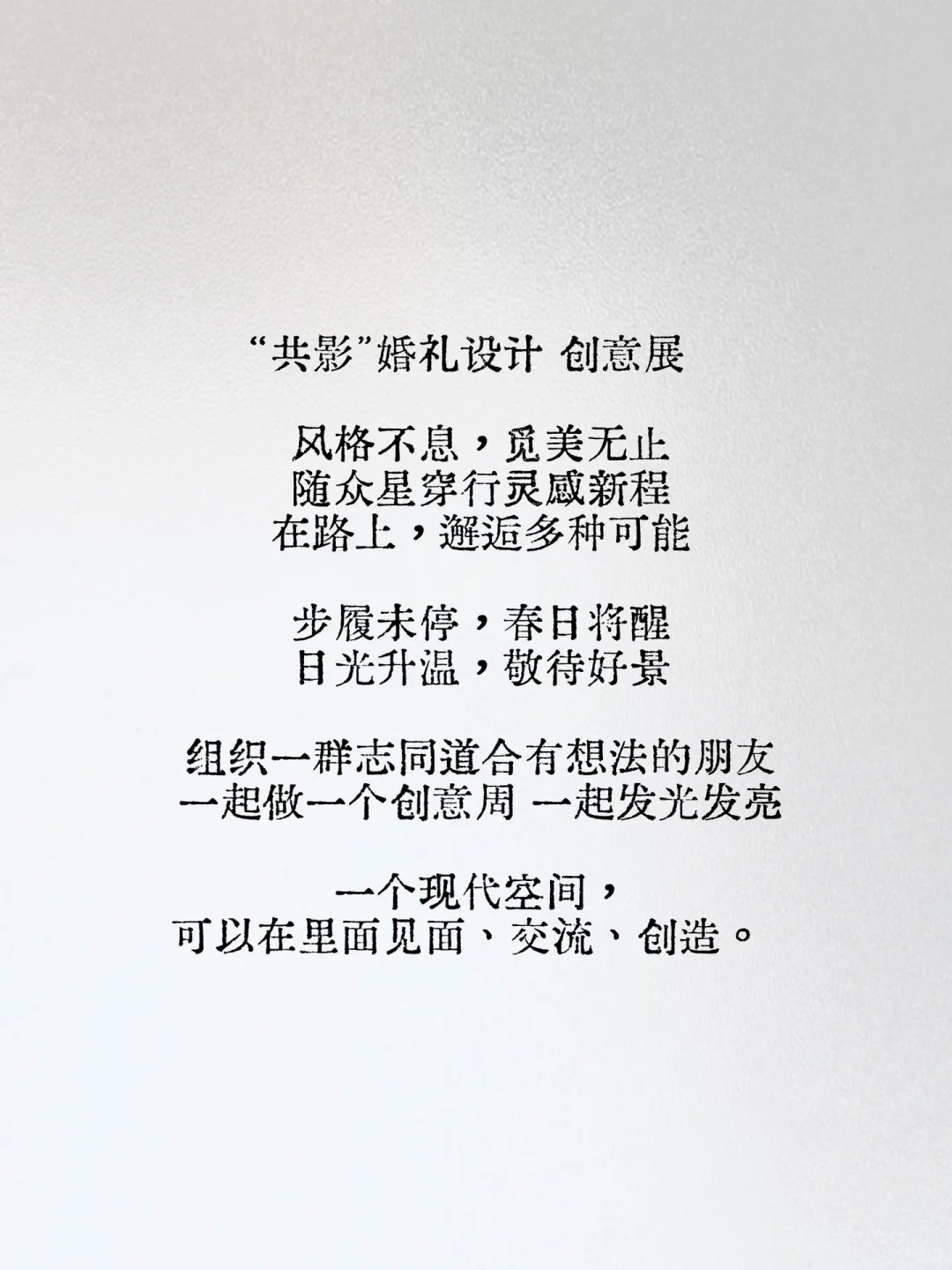 发起本次「共影」婚礼创意空间展的初衷,锁艾期寄以「破局者」的立意与决心,以联合与共赢的创作形式,打破2024年开年重庆婚礼业态竞争趋于恶化与同质的态势。