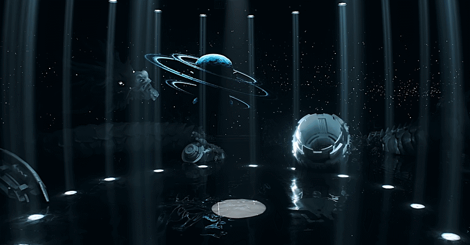 在整个场景中充满科技感的色调则通过光影效果营造出一种令人沉浸的三维空间感,展现设计的虚拟和奇幻感,感受一种超越时空的氛围体验。