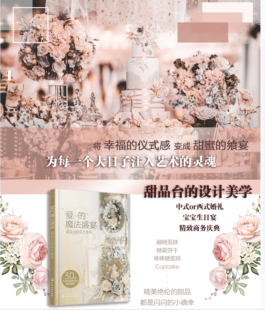 书中从甜品台的整体设计构思开始,介绍了甜品台的布置摆放、设计技巧,并详细讲述了甜品台所需要的精致细节,包括糖花、人偶、糖霜饼干、容器等。