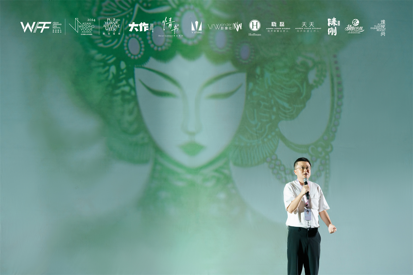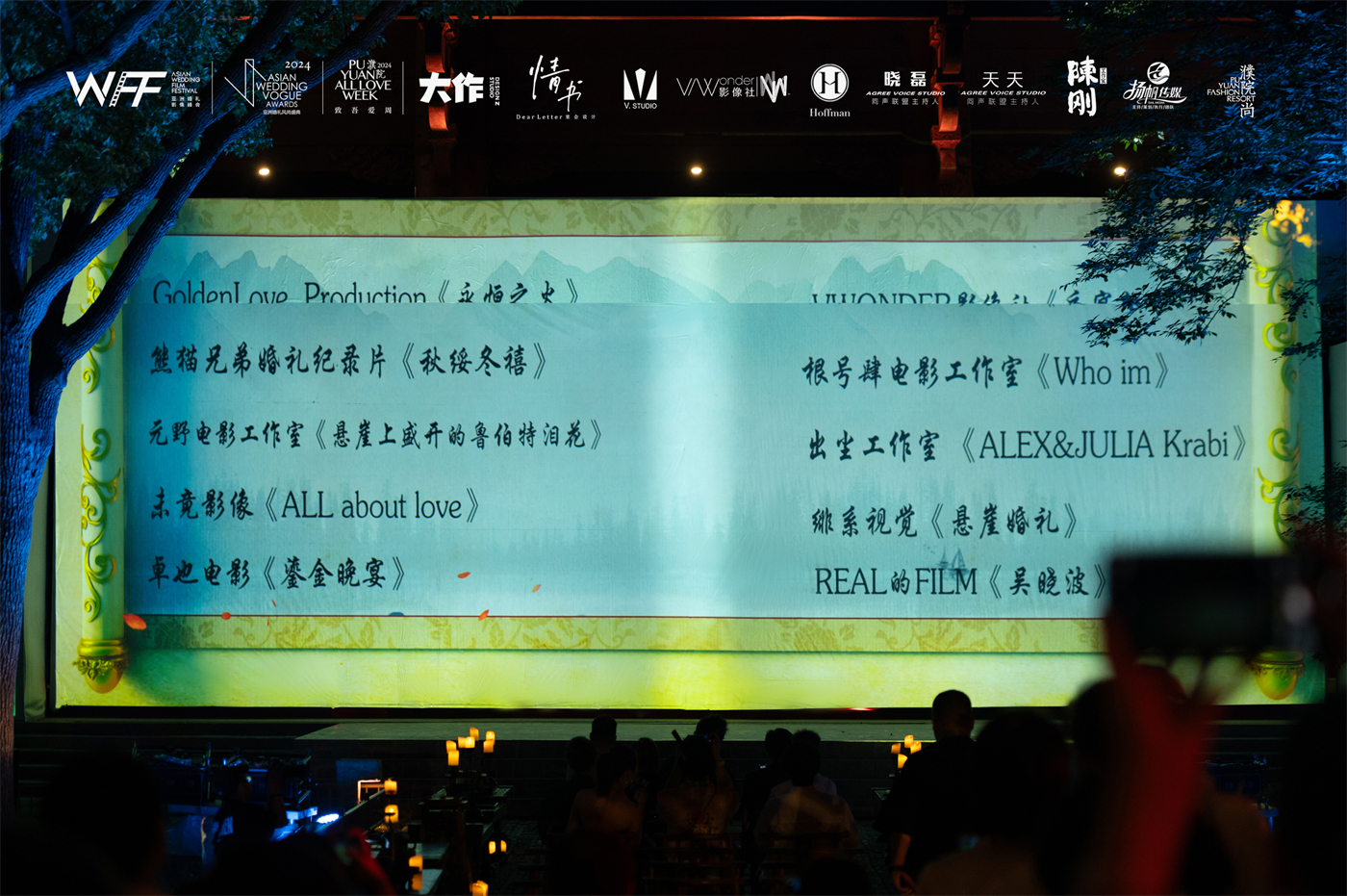 2024亚洲婚礼风尚影像节年度十大影片的展映,导演陈纯根据现场设计,一脉相承,以英雄帖的方式进行十大展映,