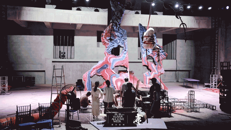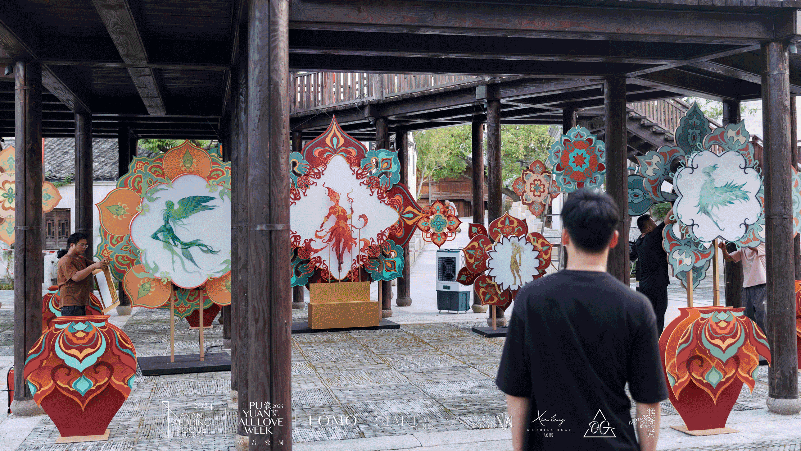 皇后婚礼企划的古曰,也是2024亚洲婚礼风尚盛典的艺术设计支持。从设计展搭建开始就忙前忙后为大家出谋划策,20件艺术展作品一一进行细节上的细化和优化。这一次设计展婚礼风尚的主装置《影画》也是古曰老师的作品。