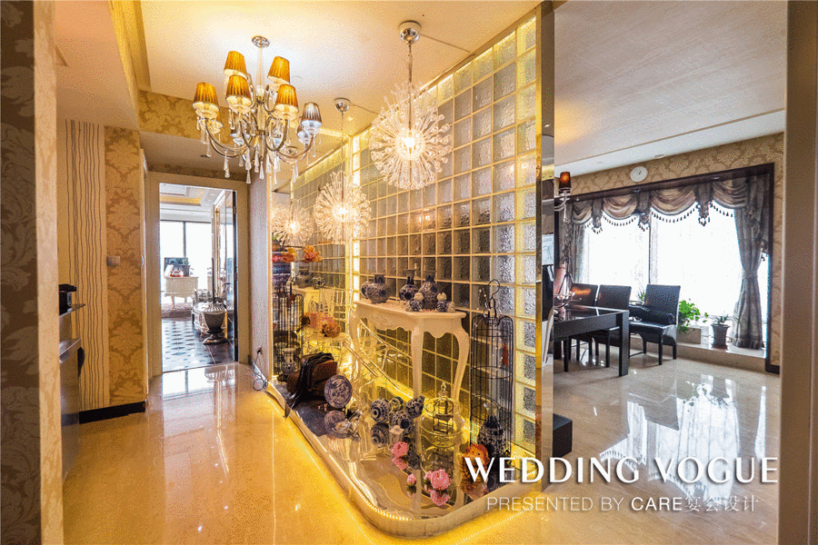 基于根据新人的想法定制的基础上,CARE加入设计师的设计理念以及当季的流行元素,以使婚礼现场更加的独一无二化。同时更加注重造景,营造空间层次感,同时注重局部细节的设计,让会场不管从哪个角度都能体现出主题。不管是布景、灯光、音乐都保持协调统一。
