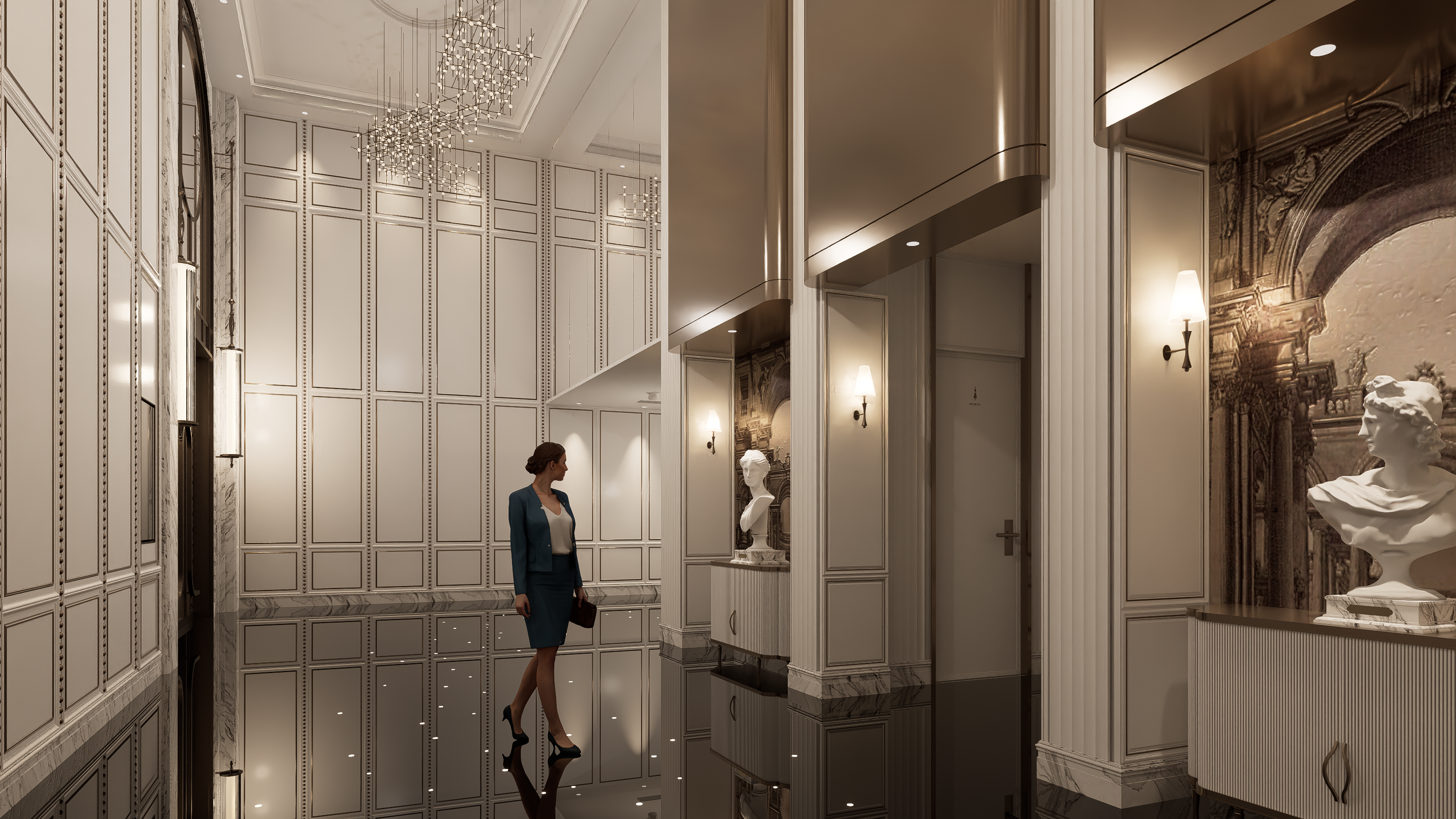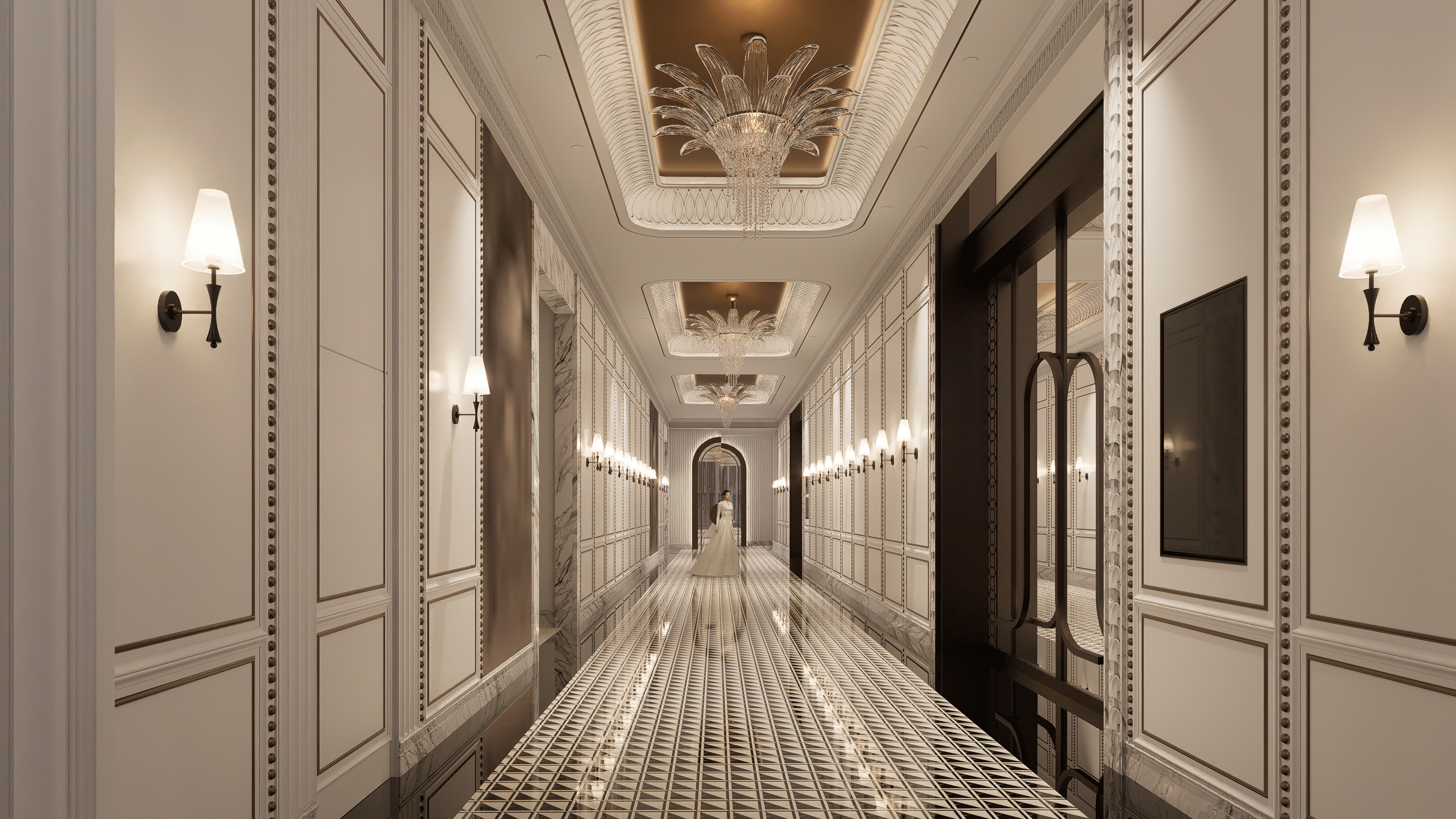 在设计中,李远杭非常注重公共区域的装饰,因为宴会酒店公共区域的形象代表了酒店品牌的定位,所以他选择了奢华内敛的老钱风。