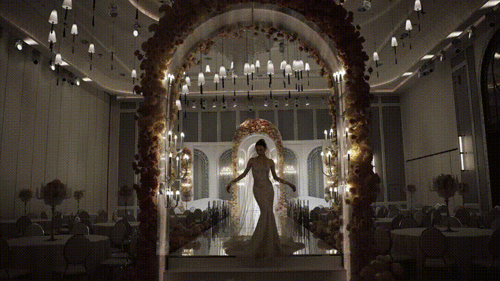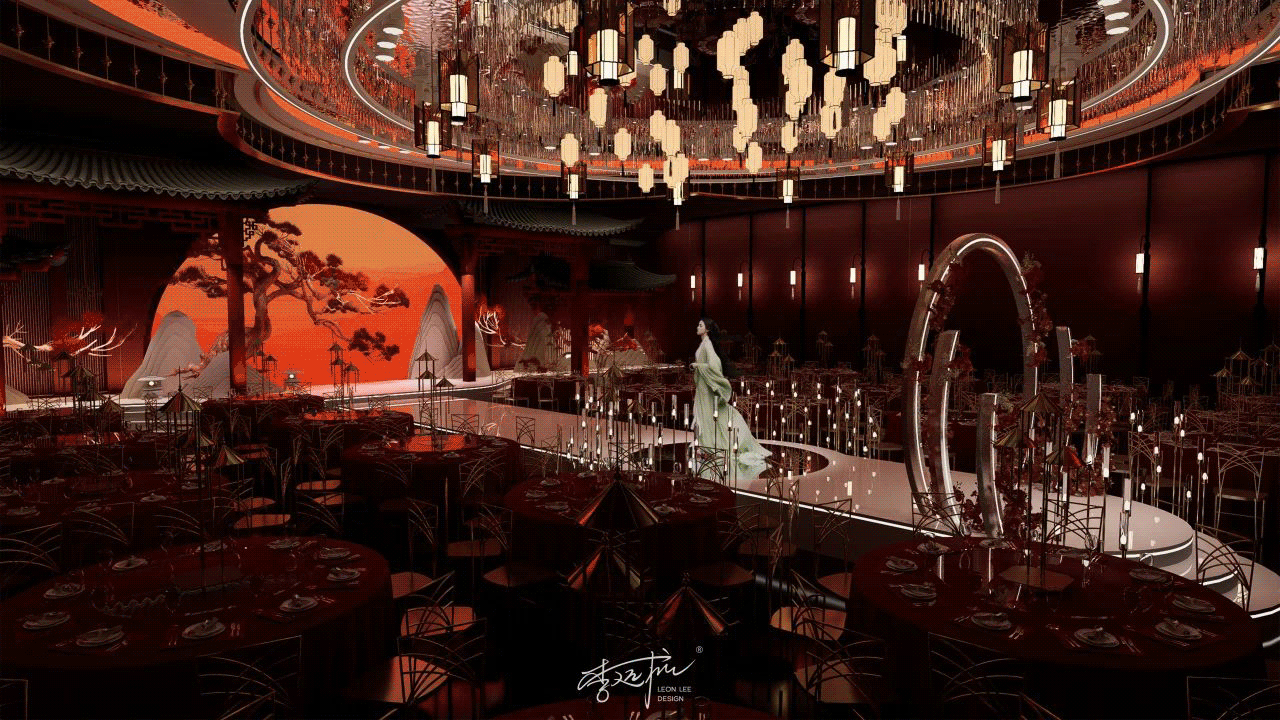 无锡泓历堰桥店是典型的百变宴会厅,他要适应婚礼、家庭宴会、商务会议,各种宴会场景,那么就需要这个宴会厅可随机组合、便于拆装,同时视觉体系和美学风格上要有足够强的包容性,那么就诞生了这么一个作品。