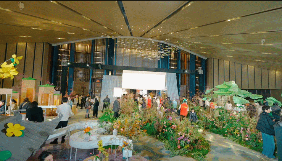 在迎宾区,以“春、夏、秋、冬”四季为主题打造了互动性与美观性兼具的置景——“四时之庭”。