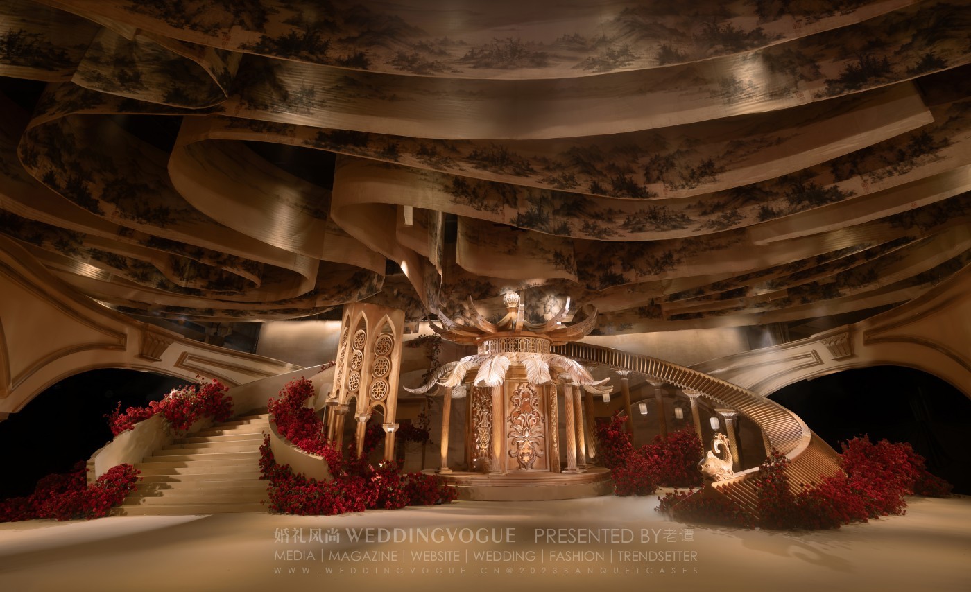向我们呈现为一幕突破新中式婚礼认知的恢弘场景!