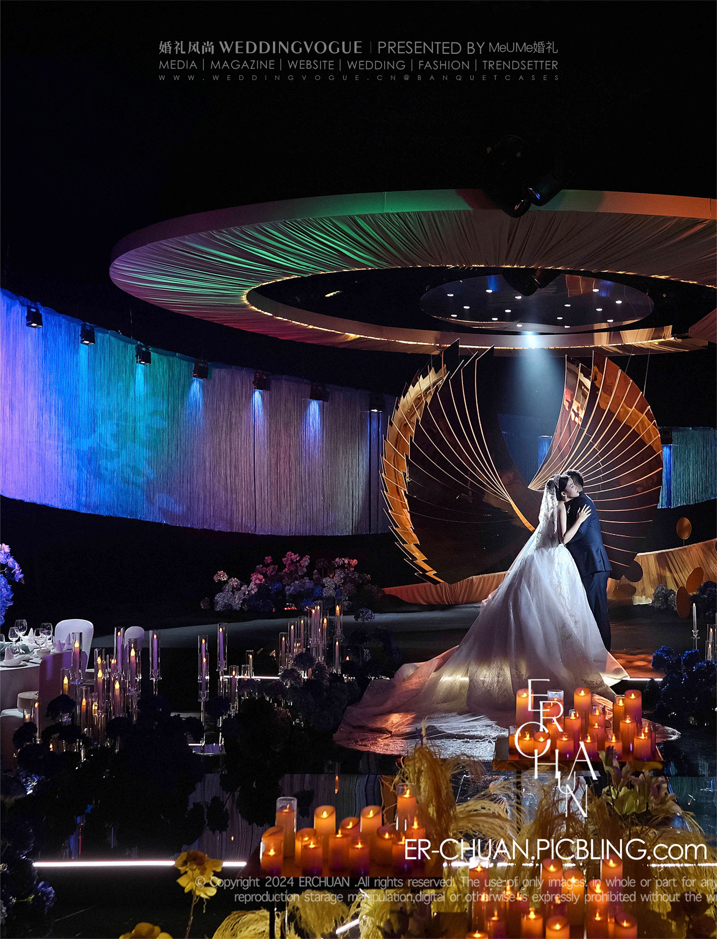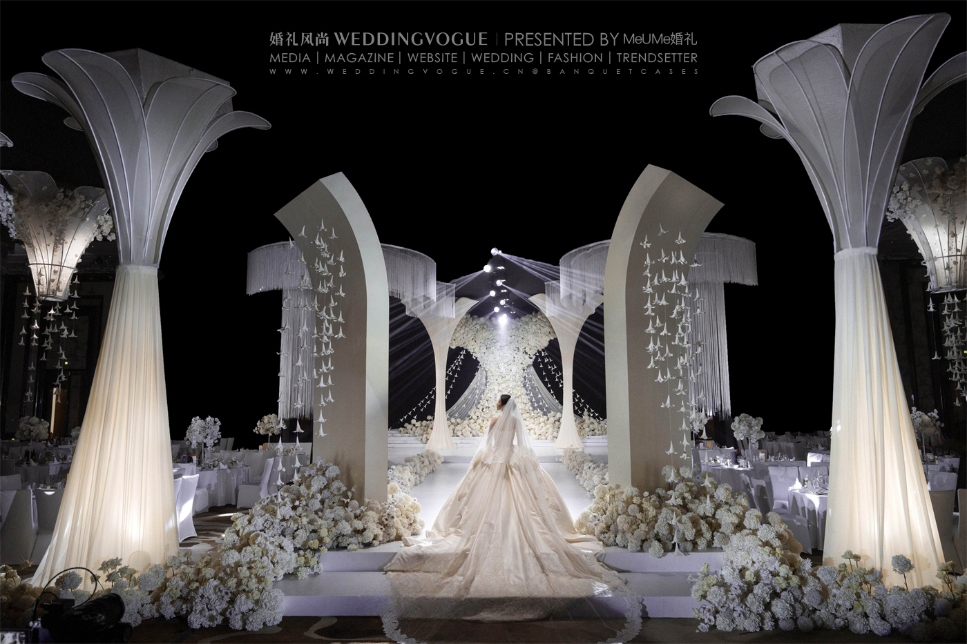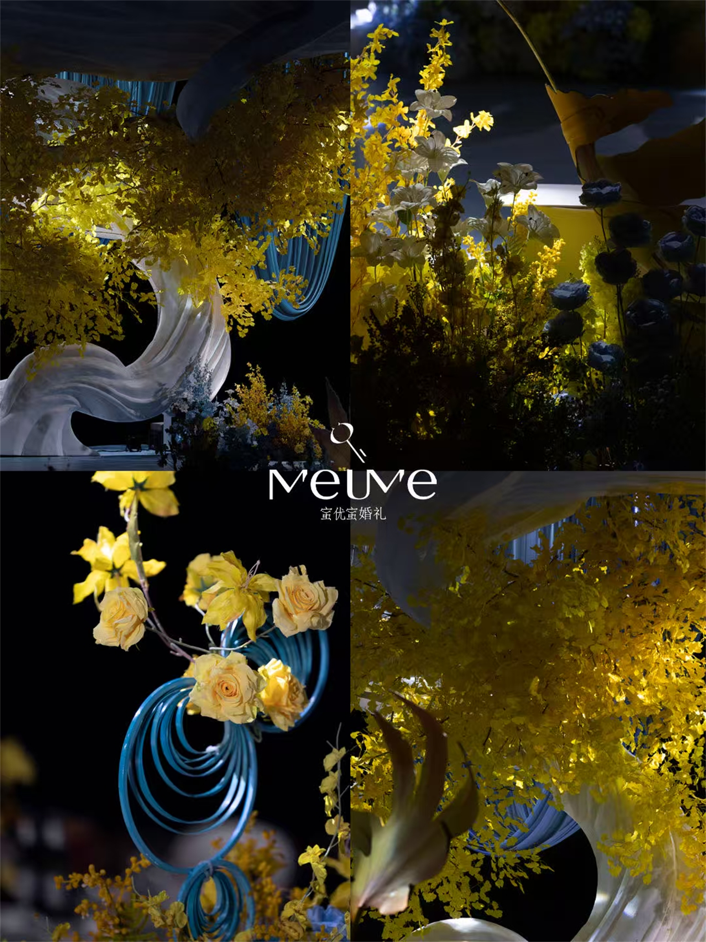 作为湖南少有的“艺术系婚礼团队”,MeUMe擅长将雕塑、光影、当代装置等元素融入婚礼场景。