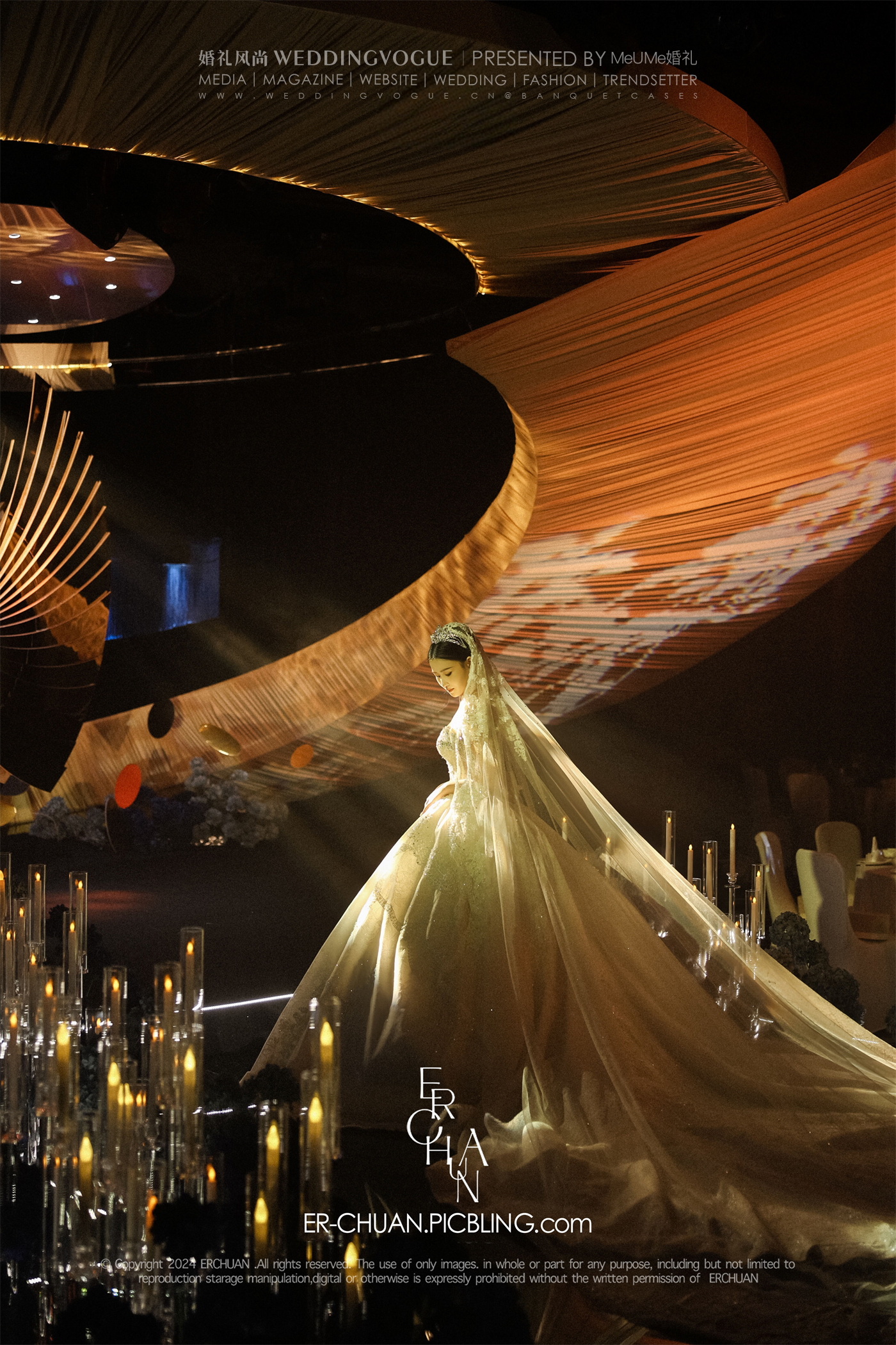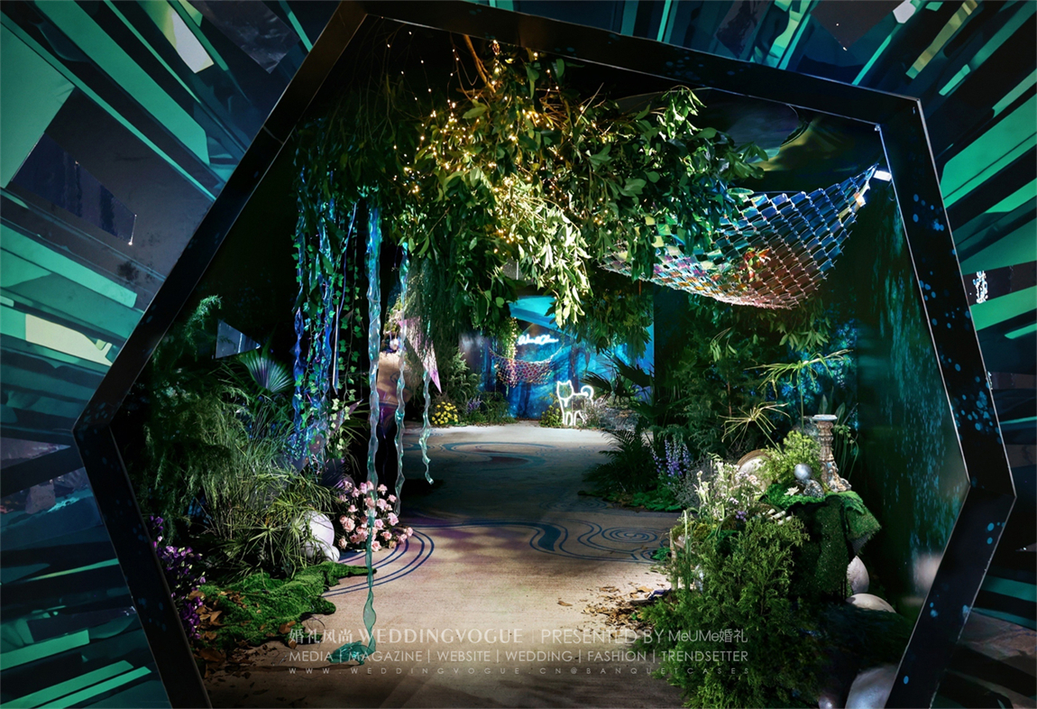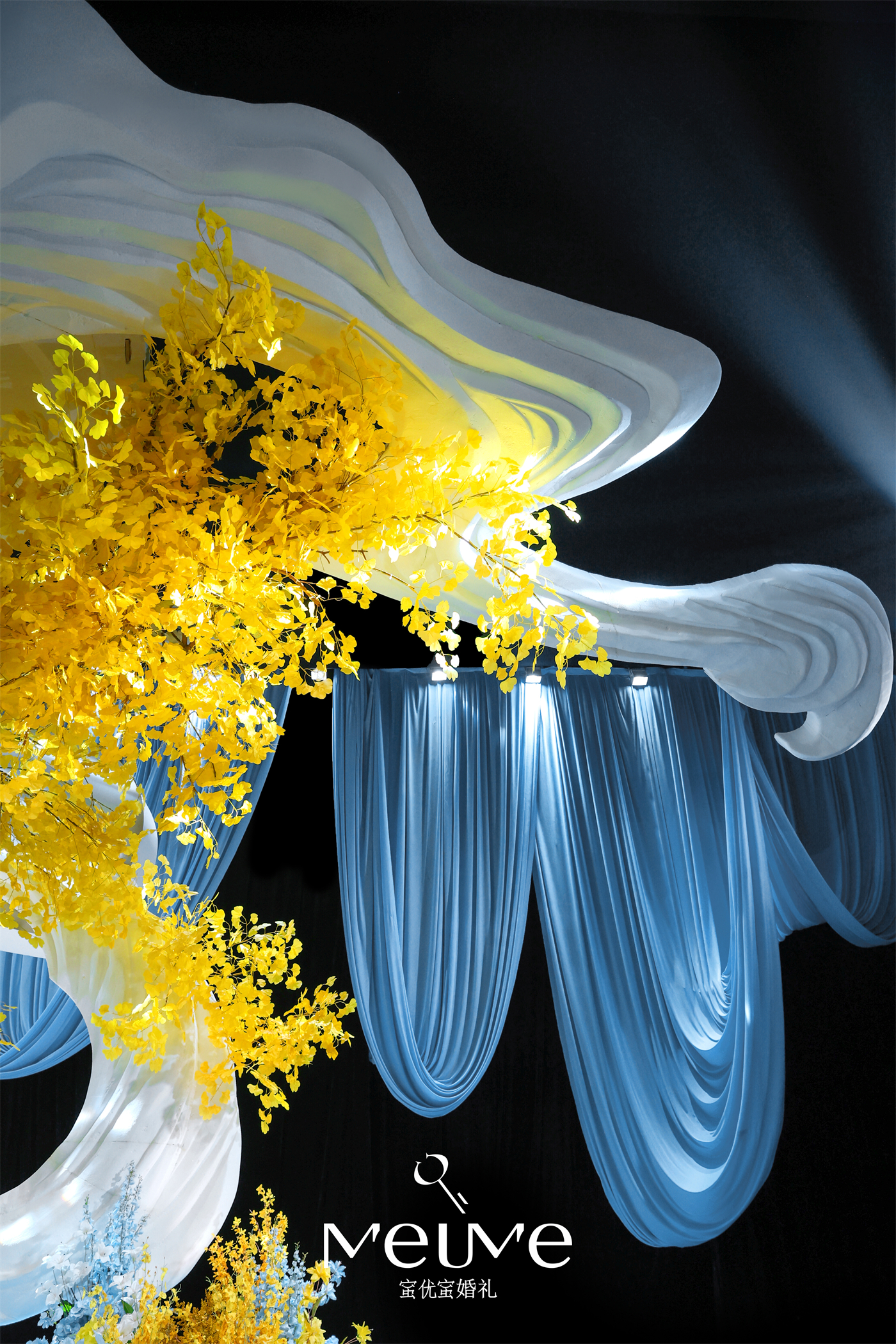 作为湖南少有的“艺术系婚礼团队”,MeUMe擅长将雕塑、光影、当代装置等元素融入婚礼场景。