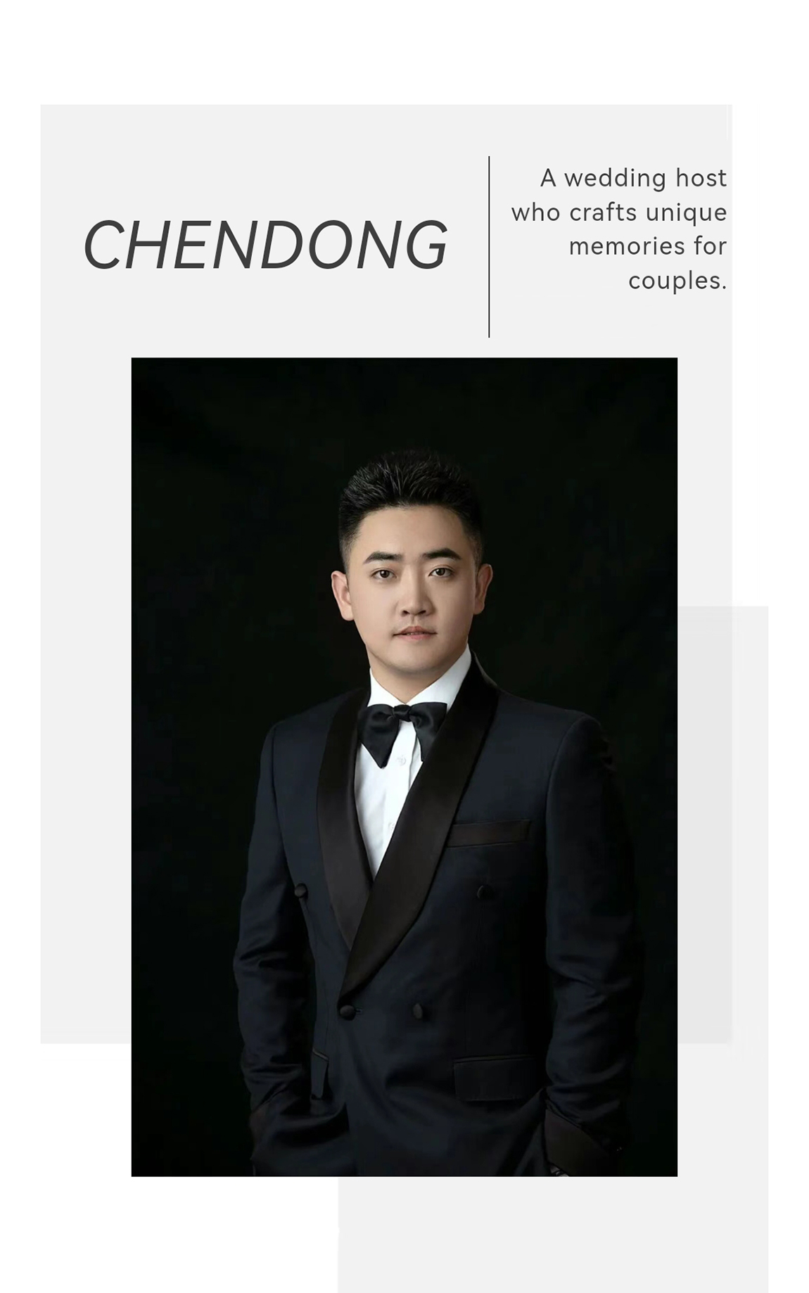 “我是一个2013年入行至今的主持人,力求为每一对新人创造不一样的体验感和仪式感。