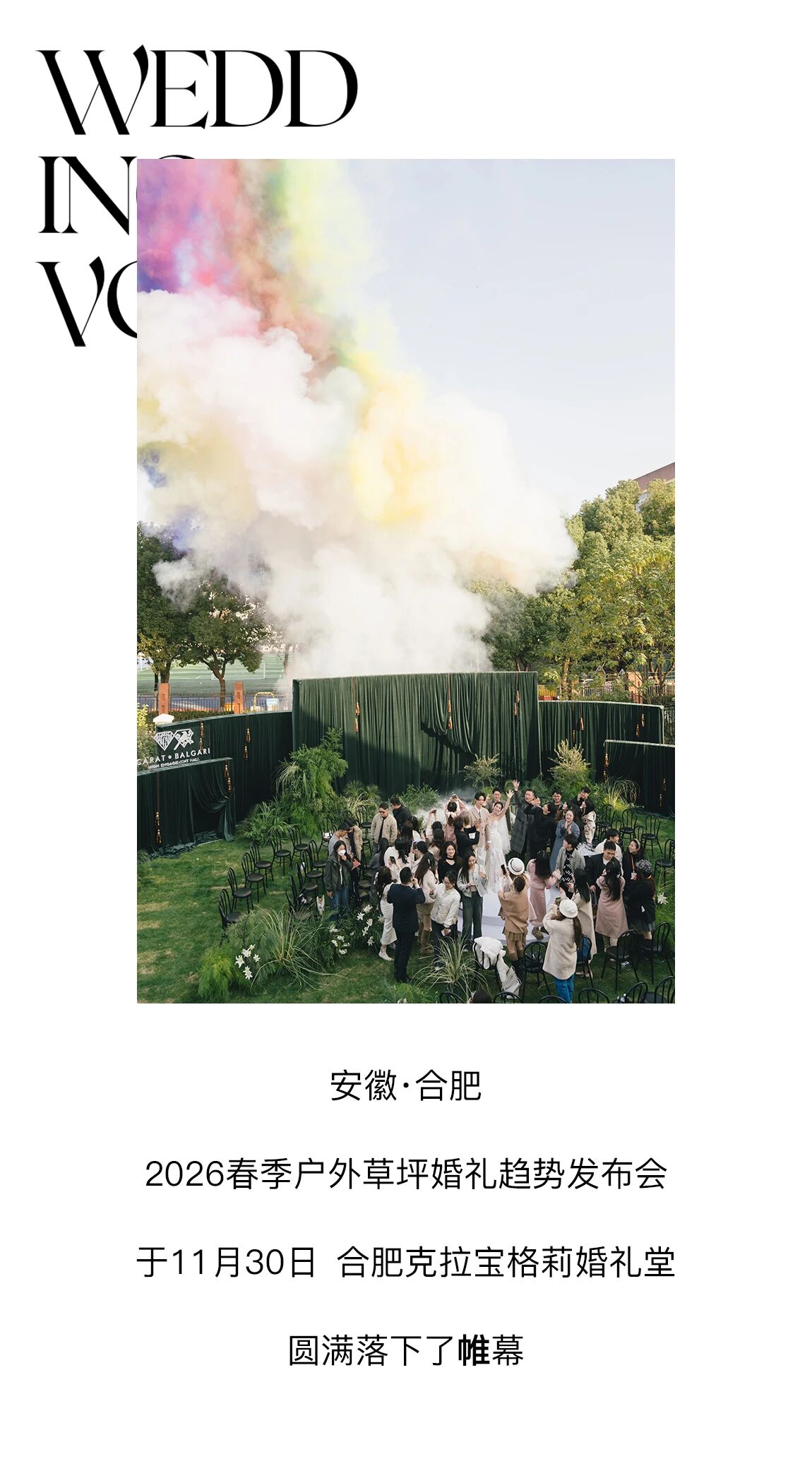 本次2026户外草坪婚礼趋势发布会,旨在让新人们看到草坪婚礼未来无限进化的空间,并且在草坪婚礼的基础上不断创新,结合装置艺术、人文秀等艺术形式,打造更理想更浪漫的婚礼效果。