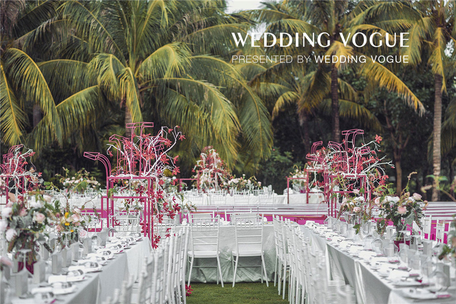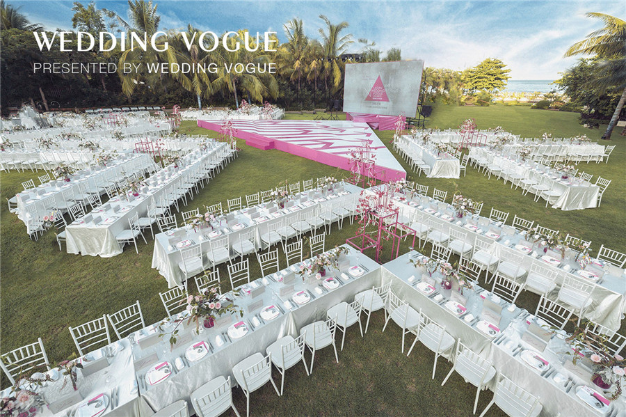 本次答谢晚宴场地,由来自上海的婚礼机构OP.Design设计,将2018亚洲婚礼风尚盛典主题《YEAH!》融入到整个场景中,更是利用草坪的优势,将区域划分为签到、红毯,合影,以及就餐区等等多功能性的区域划分,以突破性的时尚风格,引领全新的互动潮流。