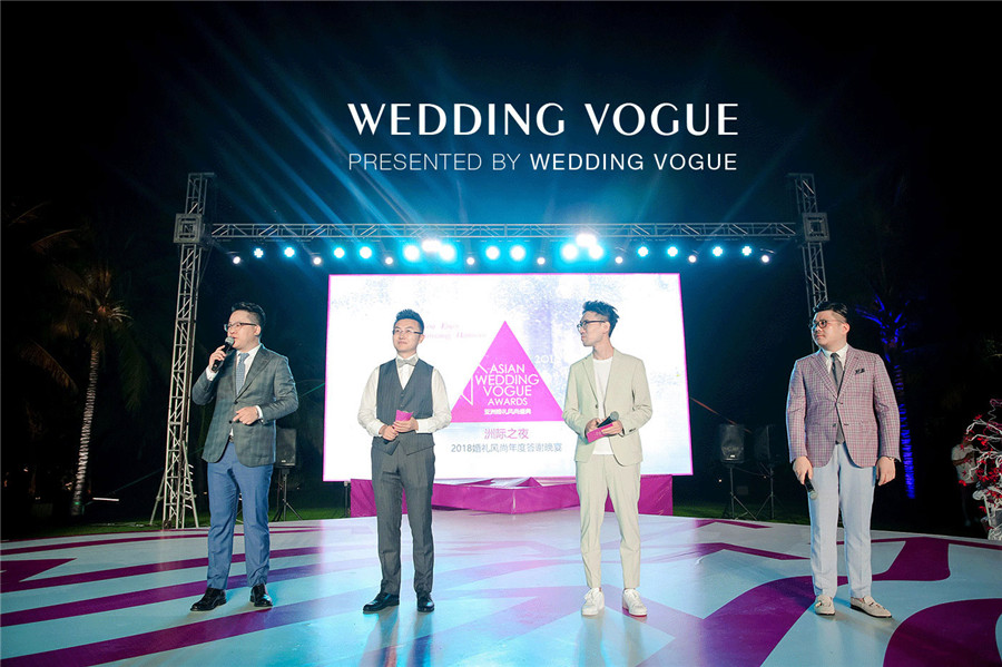 洲际之夜·2018婚礼风尚年度答谢晚宴作为婚礼风尚以及婚礼行业的年度盛事,特邀张晓光作为晚宴总导演,打造这个2018年意义非凡的婚礼人晚宴。而答谢晚宴的主持人由窦冠男、常小满、雪松、吴莫言担任,张弛有力地把控着整个晚宴的气氛。
