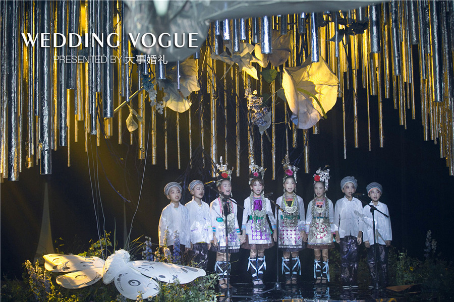 更加特别的是,这一群小朋友来自于去年“一样的孩子,一样的六一”活动中大事婚礼参与帮扶的小学。去年的短暂相聚让大事萌发出要让这群传承民族文化的小朋友能够走出去,让更多的人知道和了解贵州的侗族大歌。于是在今年的宴会设计发布上,大事婚礼借此机会不仅实现了这个愿望,小朋友们也将动人的歌声作为的礼物送给了大事婚礼,让本场宴会发布更有意义。